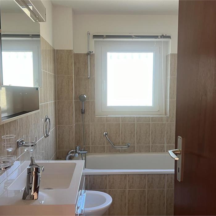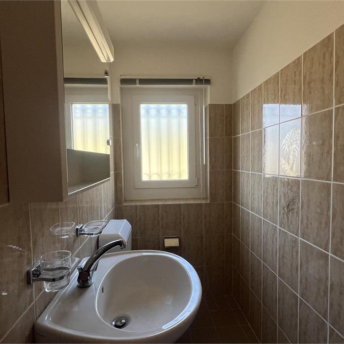 Sessa. In a quiet area surrounded by greenery, in a building of only four units, we offer for rent a 4.5-room semi-furnished flat composed as follows: Entrance on the ground floor; a flight of stairs leads to the large living room with fireplace, dining area and covered balcony; separate kitchen with provision for washing machine and access to the small terrace; three bedrooms; bathroom with tub and guest toilet both with windows. The property is completed by an attic inside the flat, a communal garden and a garage. From the area one can quickly reach the swimming pool and nature trails to enjoy one's leisure time, the border, the Ponte Tresa railway station and all the main sites in the area. Request: CHF 1100 + CHF 250 flat rate + CHF 80 garage