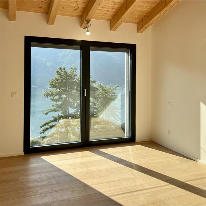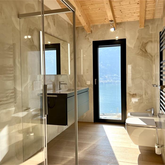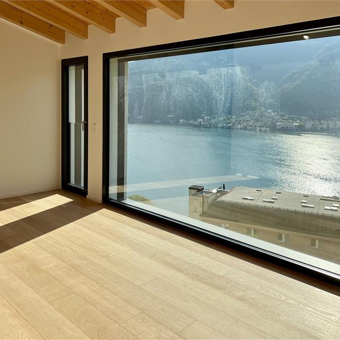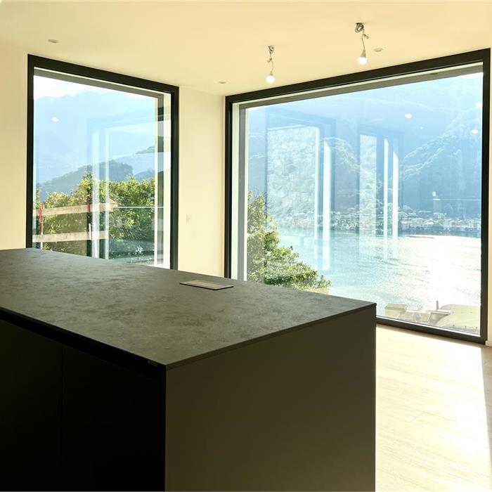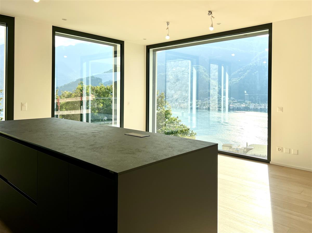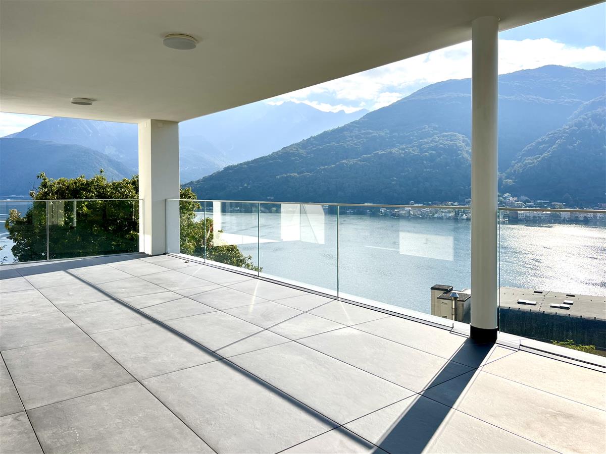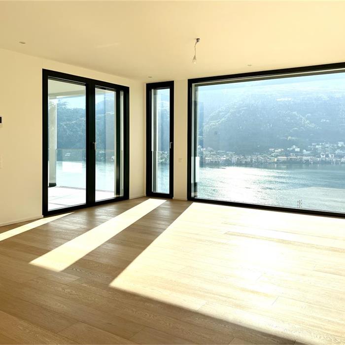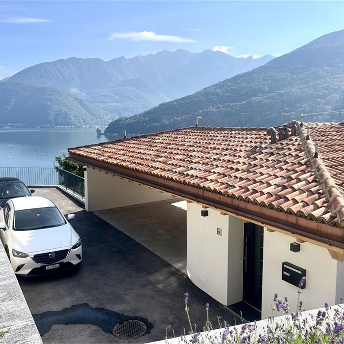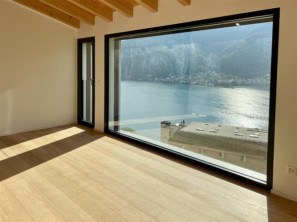 Timeless elegance, breathtaking lake views, and all the comforts of modern living: an exclusive newly built villa (2025) spread over three levels. The ideal choice for those who want to live in luxury every day. Located in a privileged residential area of Vico Morcote, it overlooks Lake Lugano with a spectacular 180° view and is exposed to the sun from sunrise to sunset. The villa offers 370 square meters of living space divided into 8.5 rooms on three levels, connected by an elevator and internal staircase. Spacious, bright rooms designed to accommodate the lifestyle of a family seeking refinement and comfort: Entrance floor: elegant entrance hall, master suite with wardrobe and private bathroom (bathtub and shower), two additional bedrooms, and bathroom with shower. Every room enjoys unparalleled lake views. First floor below: large open-plan living area with Ernesto Meda kitchen with Miele appliances, dining room, and living room with direct access to a magnificent covered terrace overlooking the lake. Second floor below: two bedrooms, a bathroom with shower, a fitness room/study or additional bedroom, laundry room, and utility rooms. The property also includes a cellar, storage spaces, two covered parking spaces, and four outdoor parking spaces.