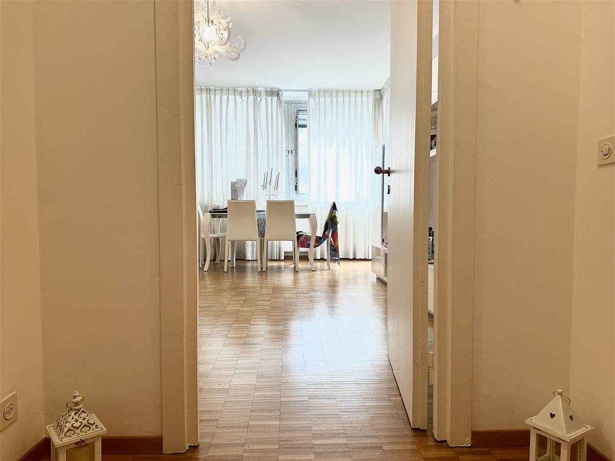 We offer for sale an elegant 2.5-room flat, located in the Cassarate district, one of the most desirable areas of Lugano, thanks to its proximity to the city centre, the lake, the main services and the shopping streets. The unit, located on the third floor of six of a building constructed in 1970, offers well distributed and bright rooms. The flat is composed as follows: Entrance hall Living room with access to terrace Kitchenette with integrated washing machine Night lobby with wardrobe space Bedroom Bathroom The property is in good condition, thanks to modernisation work. The finishes include parquet flooring in all main rooms and stoneware tiling in the bathrooms. The heating is supplied by an oil boiler, with distribution via radiators. The flat does not have a private parking space, but communal parking spaces that can be reserved by subscription are available in the immediate vicinity. The condominium has a communal laundry with washing machine and dryer available for residents. The location is strategic: within 200 metres there are schools, sports facilities, the lake and public transport stops. The centre of Lugano is easily reachable on foot in a few minutes. Surface area: Flat: 62 sqm Terrace: 3.65 sqm Commercial surface: 63.80 sqm For further information or to arrange a viewing, please do not hesitate to contact us. PRICE NEGOTIABLE.