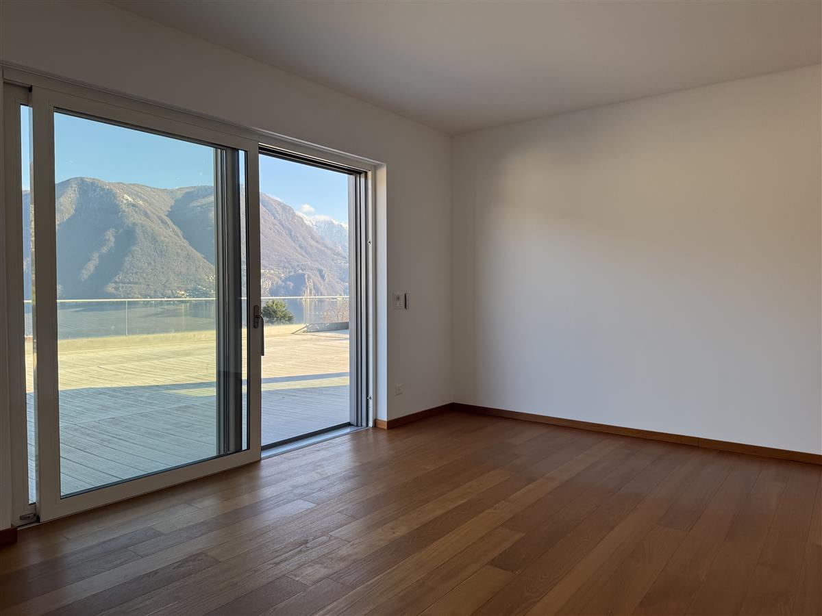 Lugano city center. In a prestigious residential setting, we are offering for sale a penthouse with 360° views of the lake and city. On the sixth floor, this refined and unique 4.5-room attic apartment is accessible directly via a lift that leads to a bright entrance hall with floor-to-ceiling windows, a spacious living room with open-plan dining area, and a separate kitchen. The living area opens onto a 173 m² terrace surrounded by impressive planters, offering one of the most breathtaking views of Lugano, stretching all the way to the Cathedral of San Lorenzo. A corridor with built-in wardrobes leads to the sleeping area. Guest bathroom, master bedroom with en-suite bathroom with shower and Jacuzzi, direct access to the terrace; a double bedroom with bathroom with shower, wardrobe, and private balcony; a third bedroom, also with access to a private balcony; bathroom with whirlpool tub. Comfort and relaxation are guaranteed by the building's sauna and fitness area. The property also includes a cellar and two parking spaces in the garage. Counterpointing materials, from the white marble that reflects natural light in the living area to the teak parquet flooring in the sleeping area, refined details in the finishes, central location, privacy, and breathtaking views are elements that make this property truly unique. Price upon request