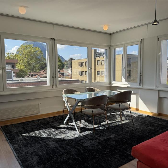 Lugano. Centrally located between Parco Ciani and the Istituto Elvetico, we are offering a newly renovated, furnished 2.5-room apartment for rent. The apartment, equipped with air conditioning, consists of an entrance hall with a large, bright living room with a sofa bed, a spacious separate kitchen with a dining area, a double bedroom, a bathroom with a shower and bidet, and a private washing machine in the apartment. The property also includes a cellar and parking spaces in the garage. Perfect for those looking for a comfortable space in the heart of the city. Rent: CHF 2200 + CHF 250 expenses + CHF 250 each for parking spaces in the garage.