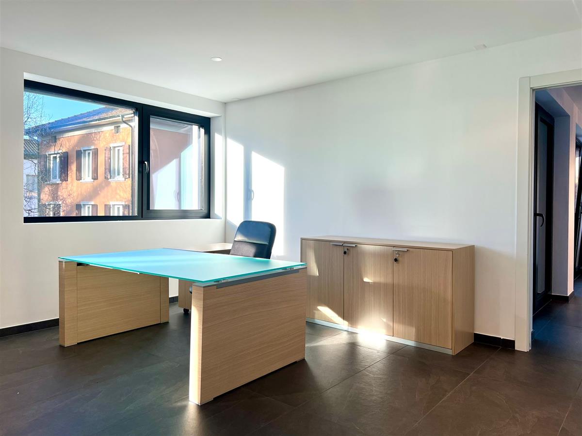 In Massagno, in a strategic location just a few minutes from the centre of Lugano, we offer for sale a modern and highly representative office space situated on the ground floor of a recently built residential and commercial property (2016). The location benefits from excellent accessibility, both by public transport and by car, with a bus stop in close proximity, Lugano railway station reachable within minutes, and quick access to the Lugano North motorway junction. The office extends over approximately 159 sqm and is designed as an open-plan space, offering a high degree of flexibility and allowing the layout to be easily adapted to specific operational requirements. The large glazed windows provide abundant natural light and excellent visibility, making the property particularly suitable for professional practices, consulting firms, fiduciary services or businesses seeking a strong and professional corporate image. The office is equipped with a linear kitchenette and a fully fitted bathroom, making it functional and ready for immediate use. The property is further enhanced by a private cellar and, as a significant added value for this type of asset, four indoor parking spaces in the underground garage. This property is ideally suited both as an owner-occupied office and as an investment opportunity, representing an attractive proposition on the local market.