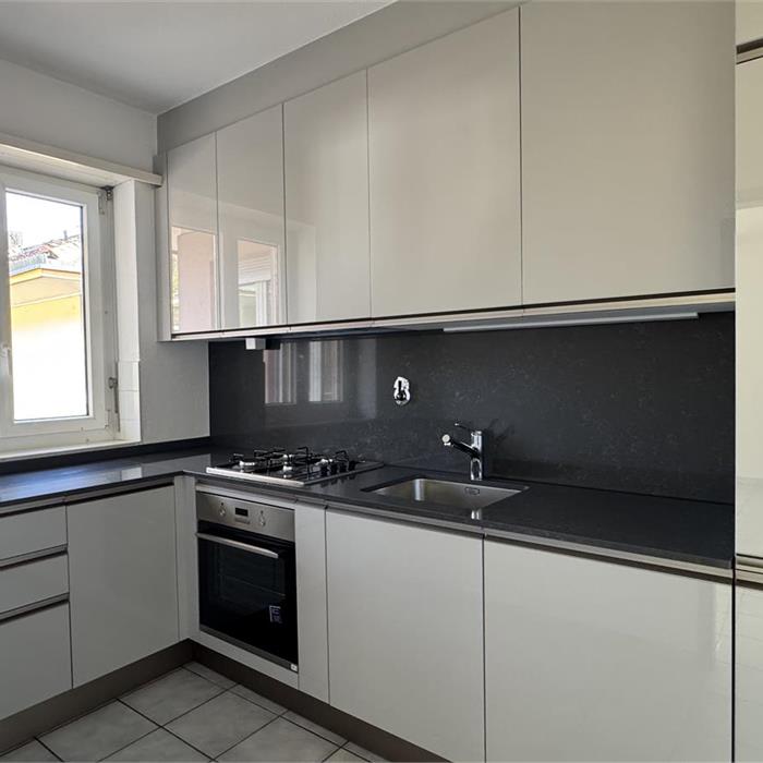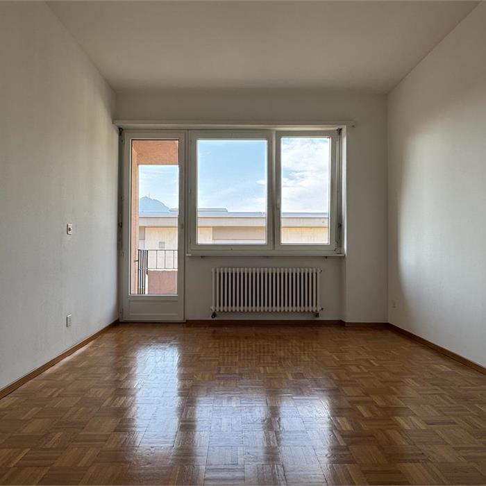 Lugano. In a convenient and well-served location, we propose various 3.5-room apartments for rent. The flats consist of an entrance hall, living room with dining area and separate kitchen, two bedrooms, and bathroom with bathtub. They are bright, equipped with comfortable balconies, and close to all amenities. The property also includes a cellar and communal laundry room. The photos refer to a sample flat intended to illustrate the type of flats available.