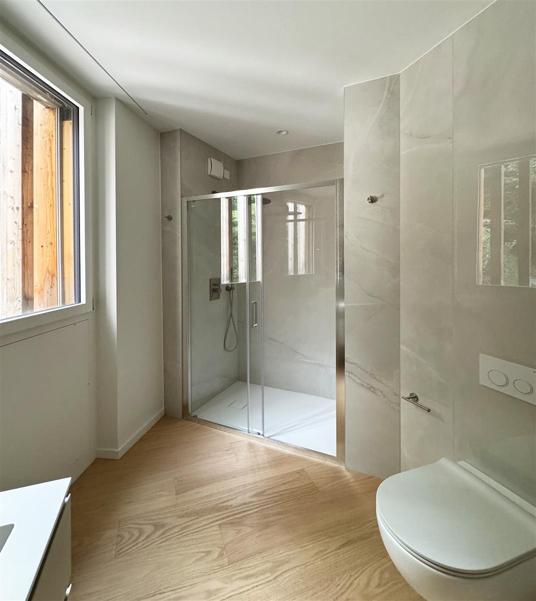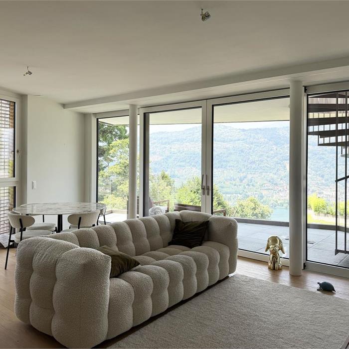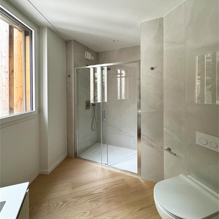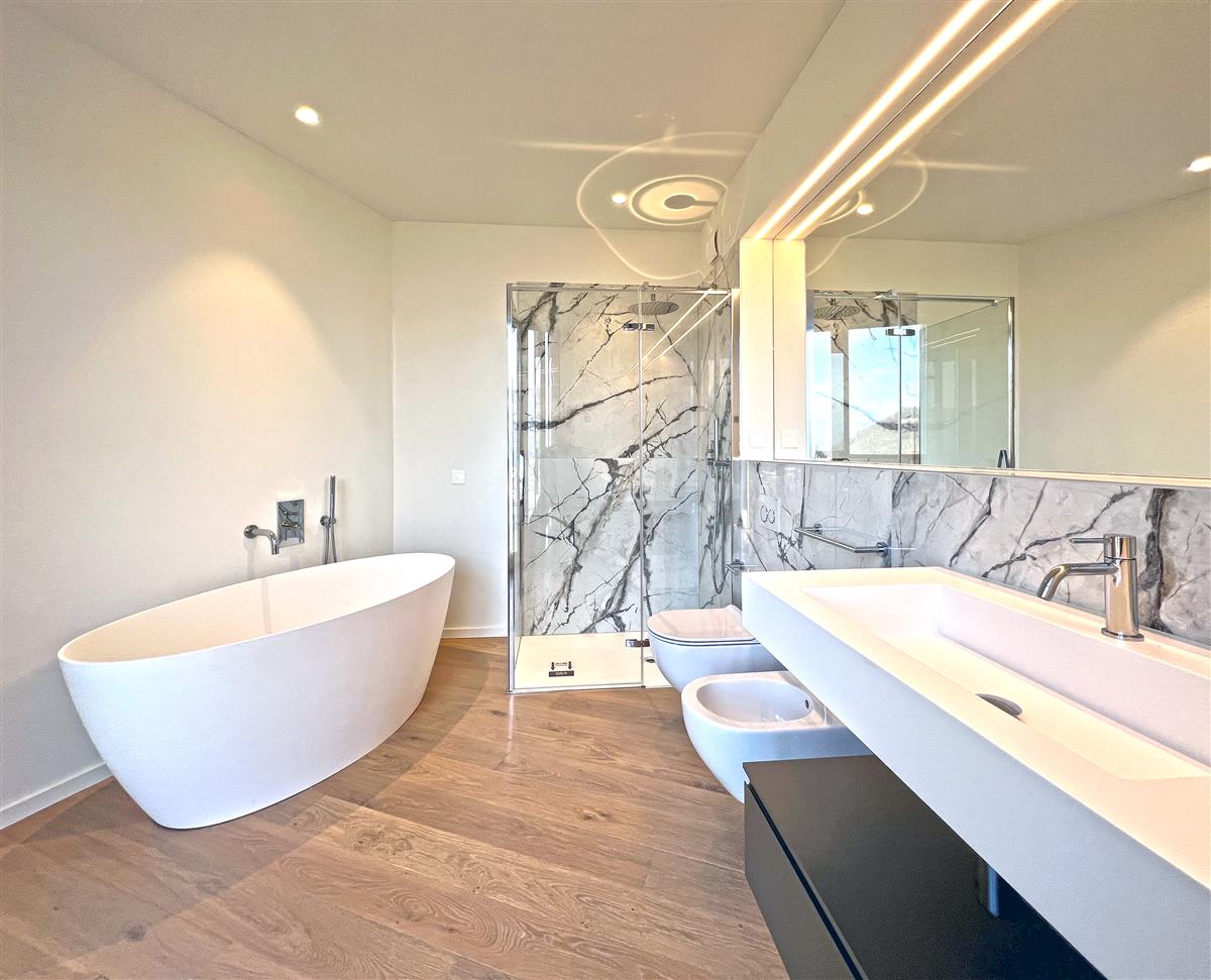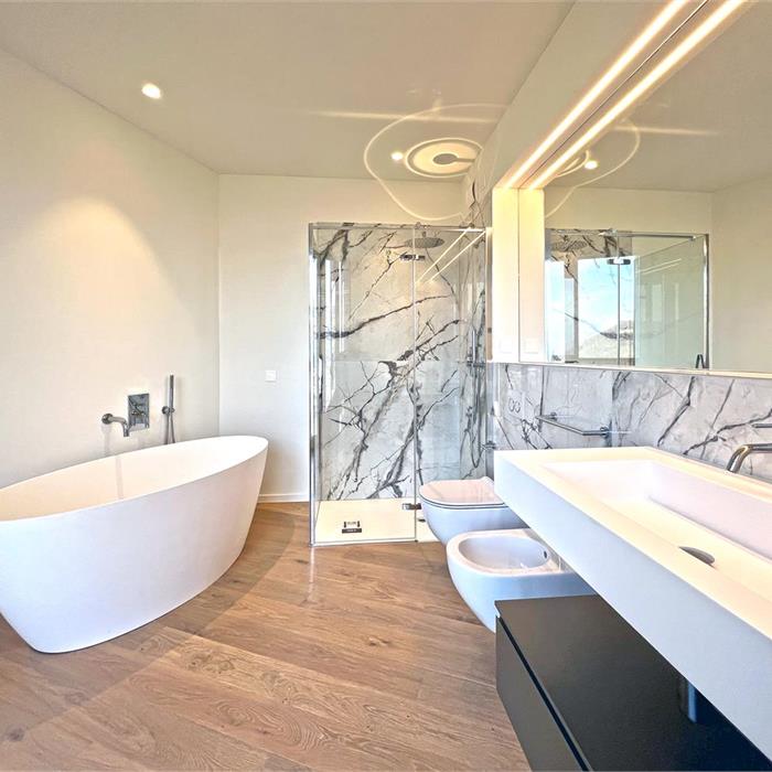 In the beautiful commune of Collina d'Oro stands the new residence 'Residenza High Line', with a splendid view of the Gulf of Agno and the surrounding mountains, just a few steps from the communal centre of Montagnola. The complex consists of 3 buildings with a total of 9 flats, interconnected by convenient footpaths through the greenery and a communal fitness area. The flats on the top, second floor have a sun terrace/garden that can be equipped with a whirlpool bath. Vehicular access provides access to the underground garage (level -1), which has 24 covered parking spaces and parking spaces for motorbikes and bicycles.