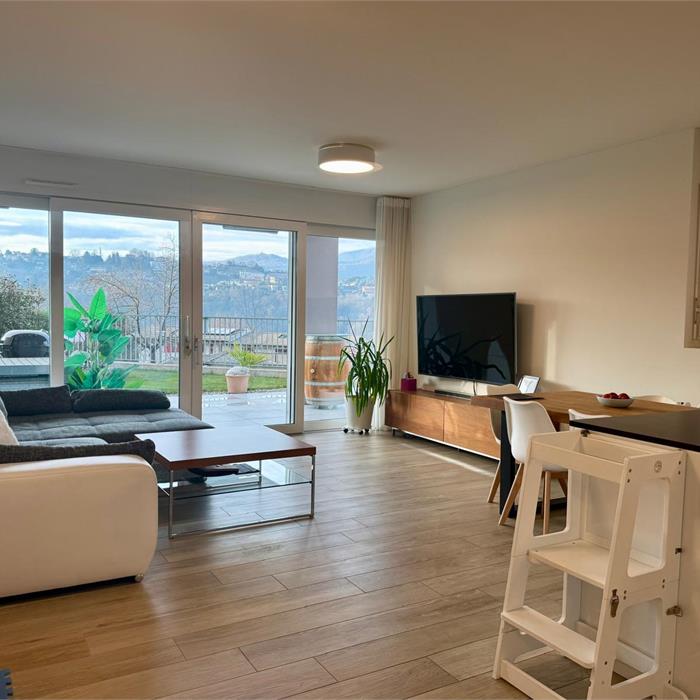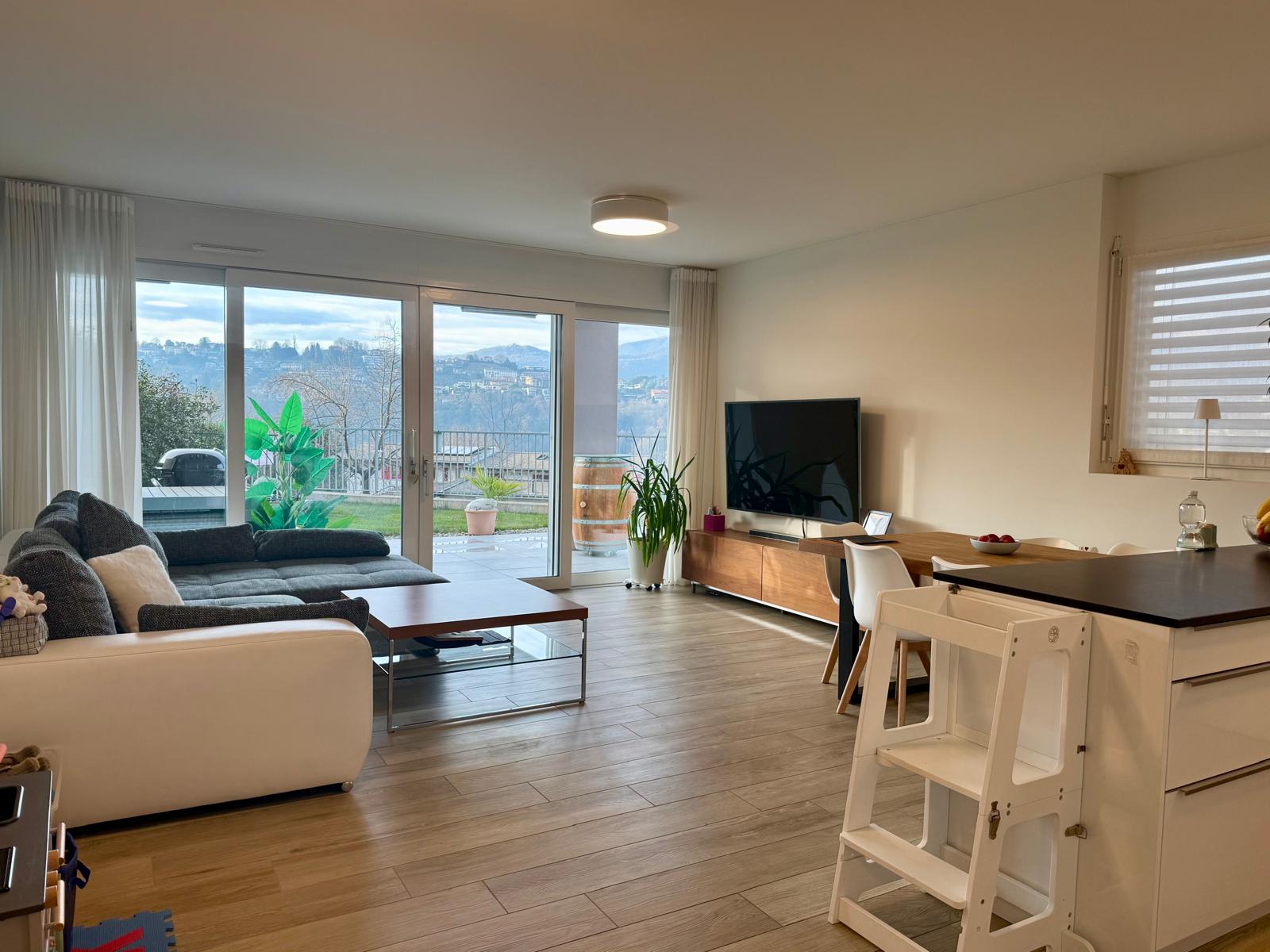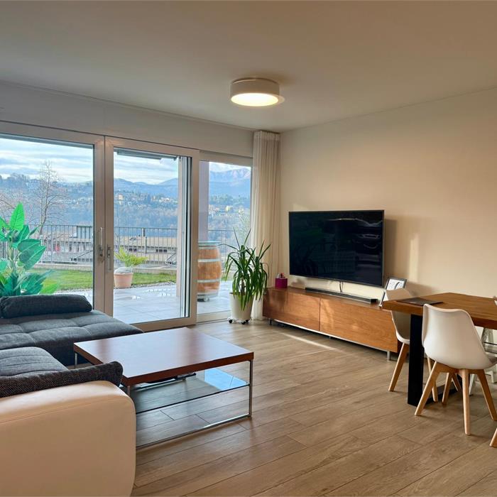 In una posizione tranquilla e verdeggiante, a pochi minuti dal centro di Lugano, proponiamo in vendita un moderno appartamento di 3.5 locali situato al piano terra di una residenza recente, costruita nel 2020. L’abitazione colpisce subito per la grande luminosità degli ambienti e per la distribuzione razionale degli spazi. La zona giorno è accogliente e ben illuminata, con accesso diretto all’area esterna composta da un piacevole giardino privato e da una terrazza coperta, perfetta da vivere in ogni stagione, ideale per momenti di relax o convivialità all’aria aperta. La zona notte offre due camere ben proporzionate e due bagni ampi e moderni: uno dotato di box doccia e l’altro con vasca, entrambi rifiniti con materiali attuali e di qualità. All’interno dell’appartamento è presente la colonna lavasciuga, un dettaglio pratico che aumenta il comfort quotidiano. L’immobile si trova in un contesto residenziale curato, immerso nel verde e con spazi all’aperto ideali per famiglie con bambini o per chi ama vivere a contatto con la natura, senza rinunciare alla vicinanza ai principali servizi e alla città. Completano la proprietà una cantina da circa 7mq e la possibilità di un posto in autorimessa a CHF 50'000.- Un appartamento recente, luminoso e pronto da vivere, perfetto per coppie, famiglie o per chi cerca qualità e tranquillità nel cuore del Ticino.