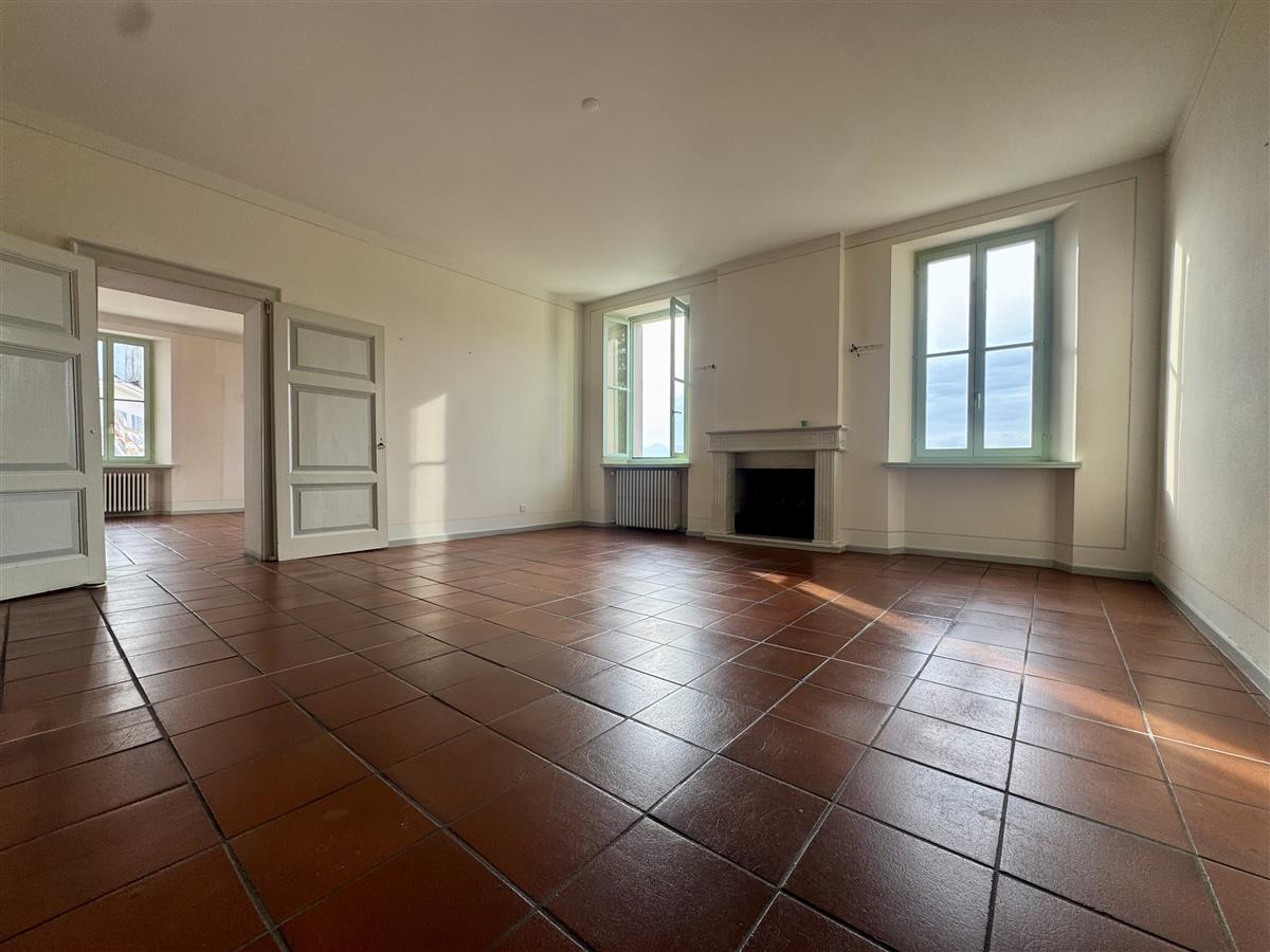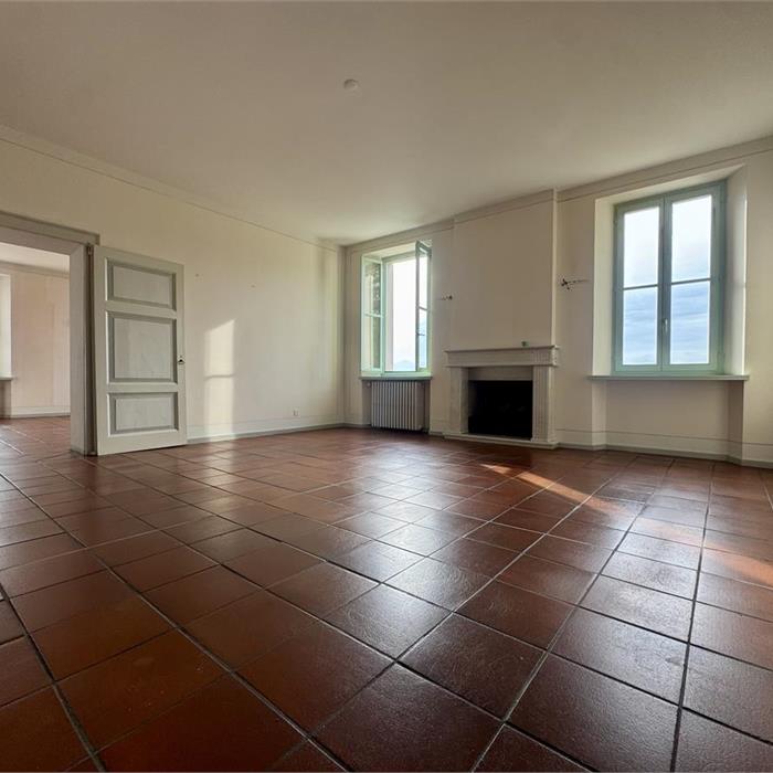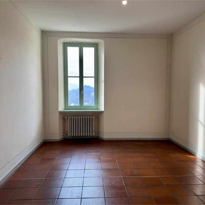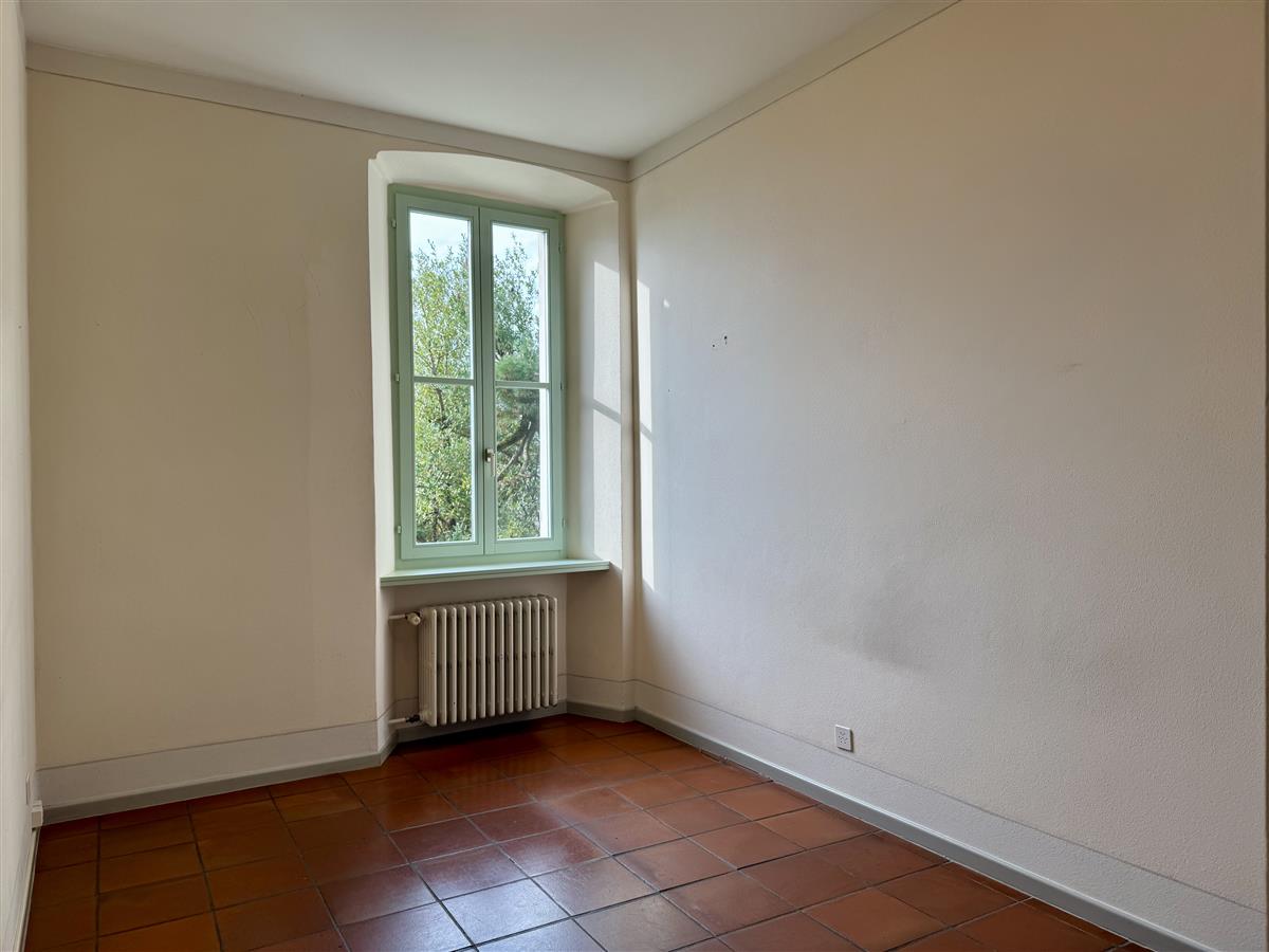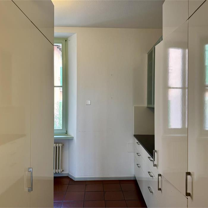 Canobbio. In zona tranquilla e panoramica nella meravigliosa cornice di Villa Fumagalli, proponiamo in locazione elegante appartamento di 6.5 locali con meravigliosa vista sul lago di Lugano. L'appartamento si trova al primo piano di uno stabile storico provvisto di ascensore e di soli tre piani con un grande parco condominiale e piscina, ed è così composto: ingresso con cucina separata, camera padronale con bagno en suite; camera da letto matrimoniale; bagno con vasca e doccia; soggiorno, sala da pranzo e biblioteca arricchita da un meraviglioso camino; una terza camera da letto provvista di bagno con doccia; locale con predisposizione per colonna lavasciuga. Completano la proprietà cantina e due posti auto in autorimessa. Le ampie metrature, l'aver preservato il contesto storico e la posizione rendono questo immobile imperdibile per una famiglia che vuole godere di un contesto tranquillo a 10 minuti dalla città. Richiesta: CHF 2900 + CHF 500 spese a forfait + CHF 150 cad. posti auto