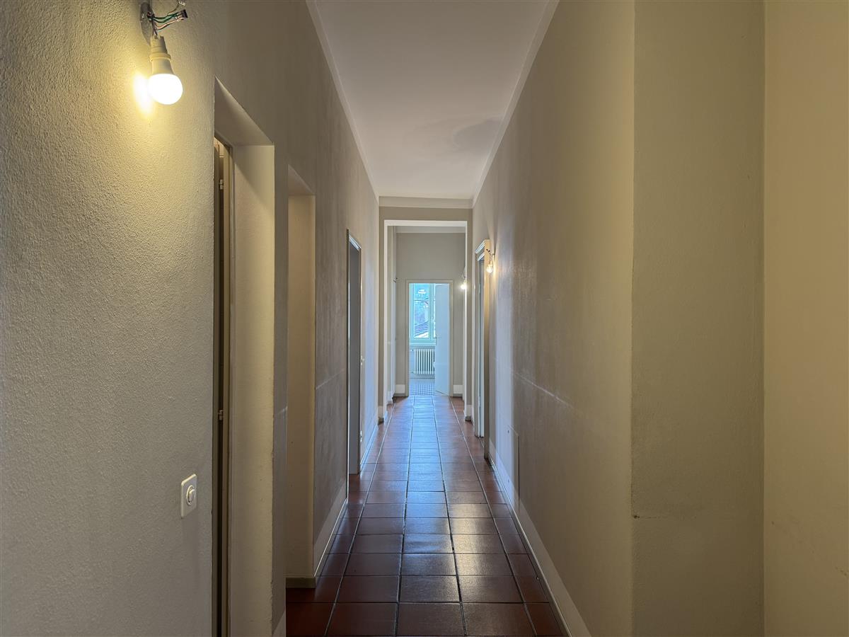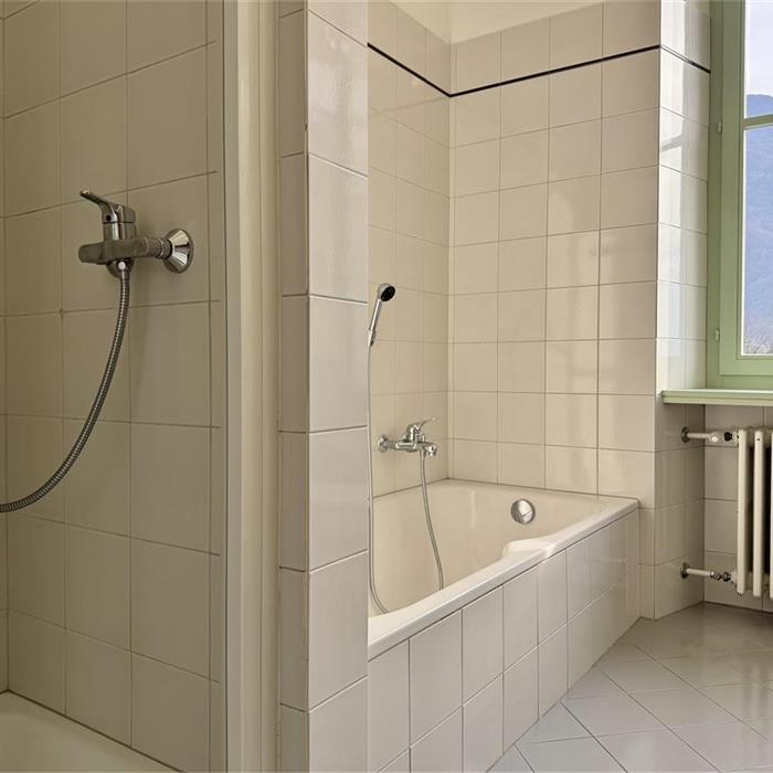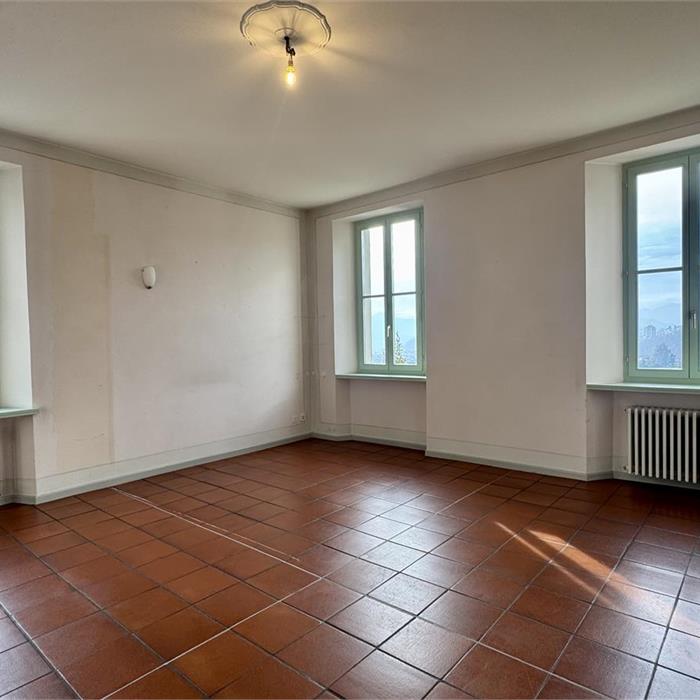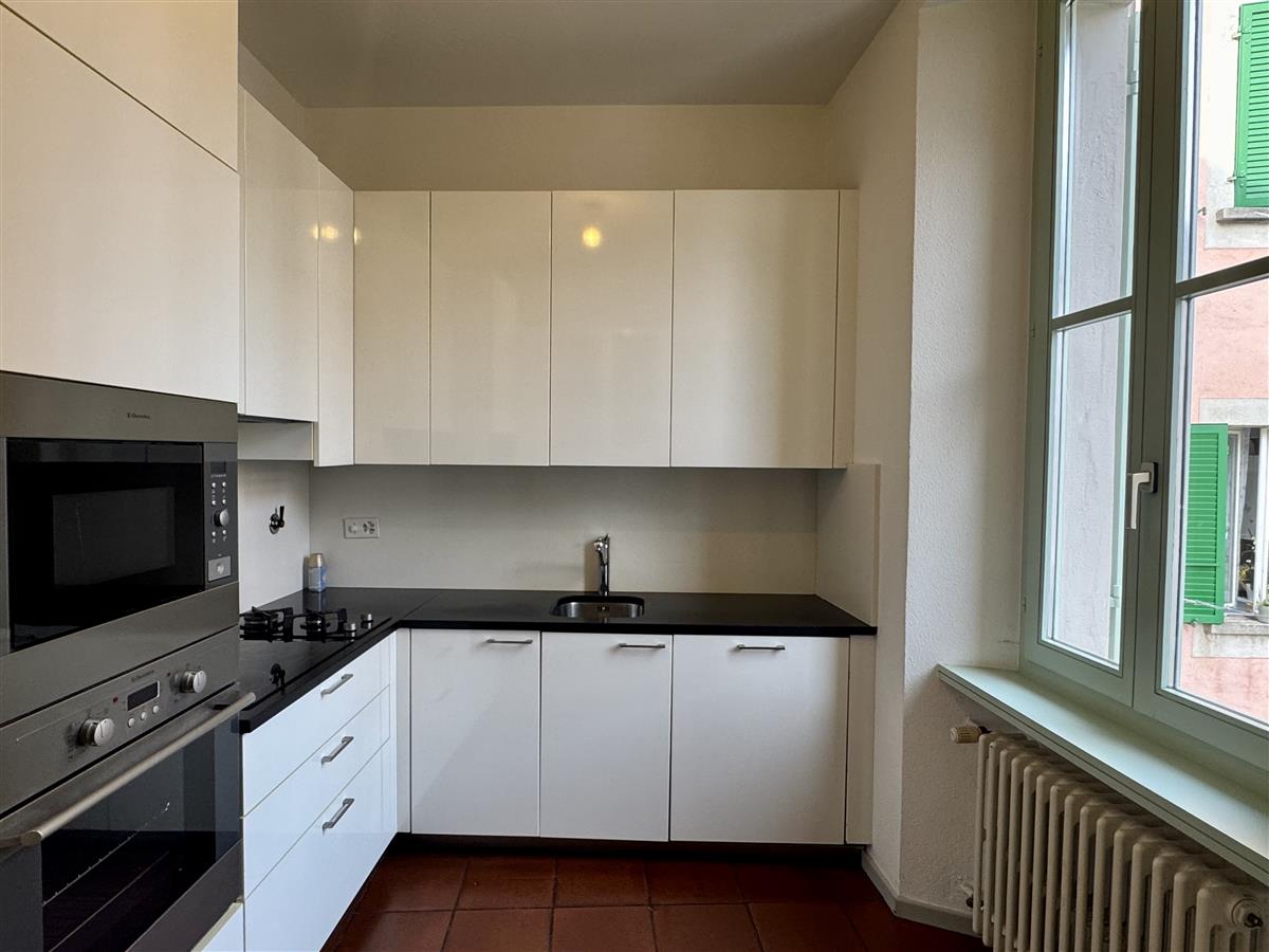 Canobbio. In zona tranquilla e panoramica nella meravigliosa cornice di Villa Fumagalli, proponiamo in locazione elegante appartamento di 6.5 locali con meravigliosa vista sul lago di Lugano. L'appartamento si trova al primo piano di uno stabile storico provvisto di ascensore e di soli tre piani con un grande parco condominiale e piscina, ed è così composto: ingresso con cucina separata, camera padronale con bagno en suite; camera da letto matrimoniale; bagno con vasca e doccia; soggiorno, sala da pranzo e biblioteca arricchita da un meraviglioso camino; una terza camera da letto provvista di bagno con doccia; locale con predisposizione per colonna lavasciuga. Completano la proprietà cantina e due posti auto in autorimessa. Le ampie metrature, l'aver preservato il contesto storico e la posizione rendono questo immobile imperdibile per una famiglia che vuole godere di un contesto tranquillo a 10 minuti dalla città. Richiesta: CHF 2900 + CHF 500 spese a forfait + CHF 150 cad. posti auto