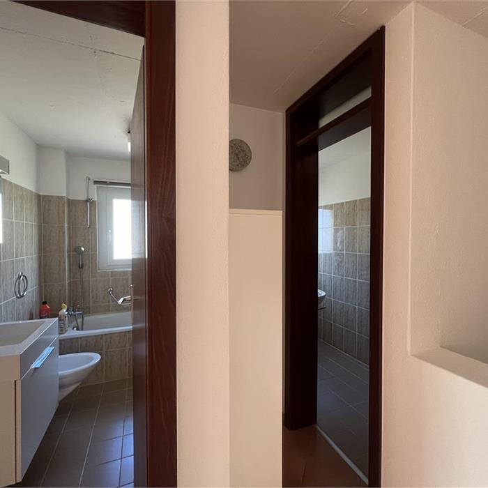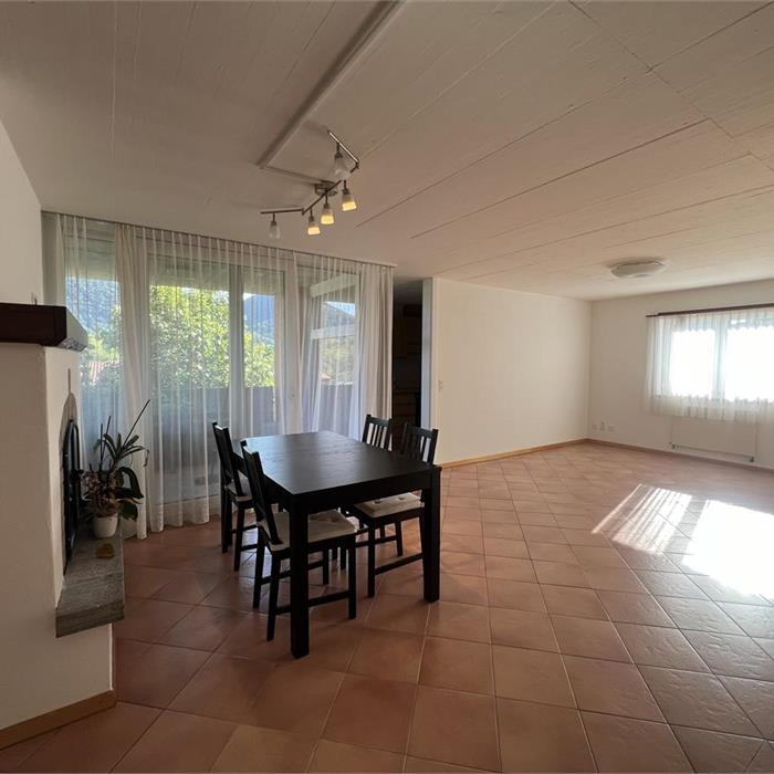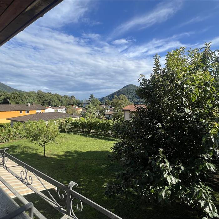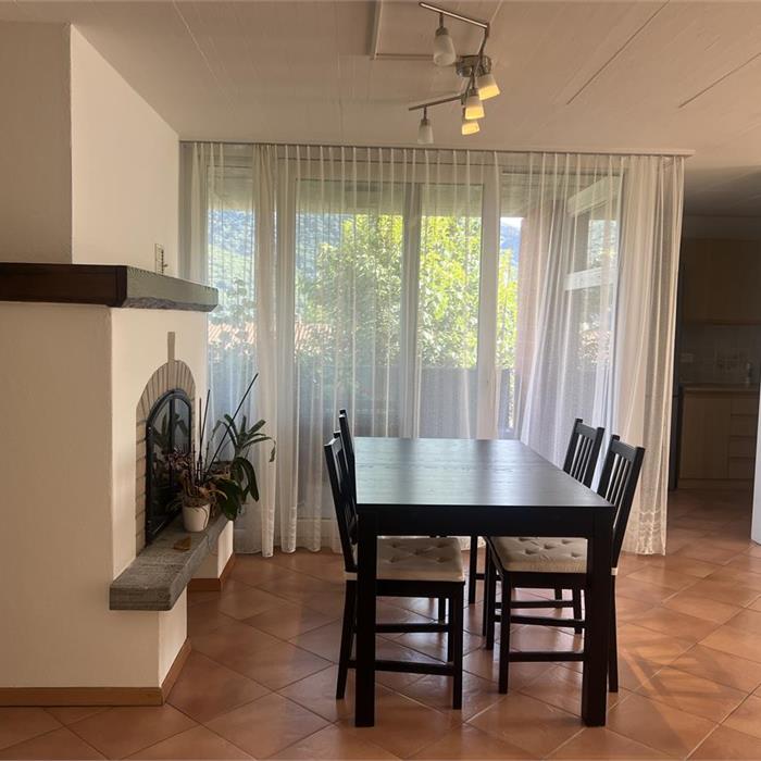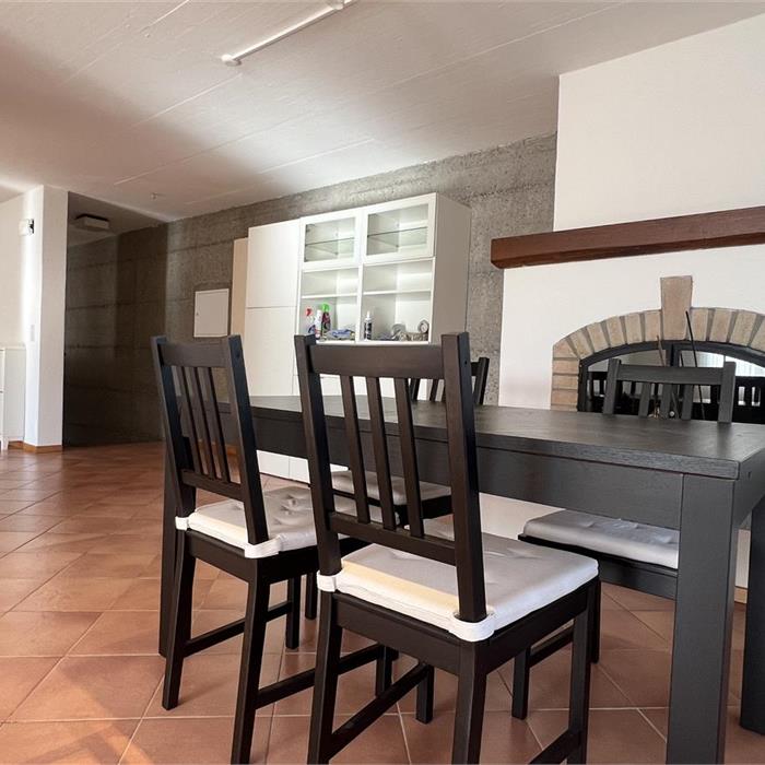 Sessa. In a quiet area surrounded by greenery, in a building of only four units, we offer for rent a 4.5-room semi-furnished flat composed as follows: Entrance on the ground floor; a flight of stairs leads to the large living room with fireplace, dining area and covered balcony; separate kitchen with provision for washing machine and access to the small terrace; three bedrooms; bathroom with tub and guest toilet both with windows. The property is completed by an attic inside the flat, a communal garden and a garage. From the area one can quickly reach the swimming pool and nature trails to enjoy one's leisure time, the border, the Ponte Tresa railway station and all the main sites in the area. Request: CHF 1100 + CHF 250 flat rate + CHF 80 garage