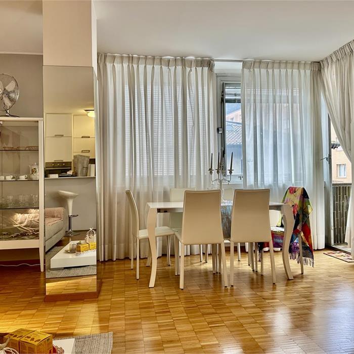 We offer for sale an elegant 2.5-room flat, located in the Cassarate district, one of the most desirable areas of Lugano, thanks to its proximity to the city centre, the lake, the main services and the shopping streets. The unit, located on the third floor of six of a building constructed in 1970, offers well distributed and bright rooms. The flat is composed as follows: Entrance hall Living room with access to terrace Kitchenette with integrated washing machine Night lobby with wardrobe space Bedroom Bathroom The property is in good condition, thanks to modernisation work. The finishes include parquet flooring in all main rooms and stoneware tiling in the bathrooms. The heating is supplied by an oil boiler, with distribution via radiators. The flat does not have a private parking space, but communal parking spaces that can be reserved by subscription are available in the immediate vicinity. The condominium has a communal laundry with washing machine and dryer available for residents. The location is strategic: within 200 metres there are schools, sports facilities, the lake and public transport stops. The centre of Lugano is easily reachable on foot in a few minutes. Surface area: Flat: 62 sqm Terrace: 3.65 sqm Commercial surface: 63.80 sqm For further information or to arrange a viewing, please do not hesitate to contact us. PRICE NEGOTIABLE.