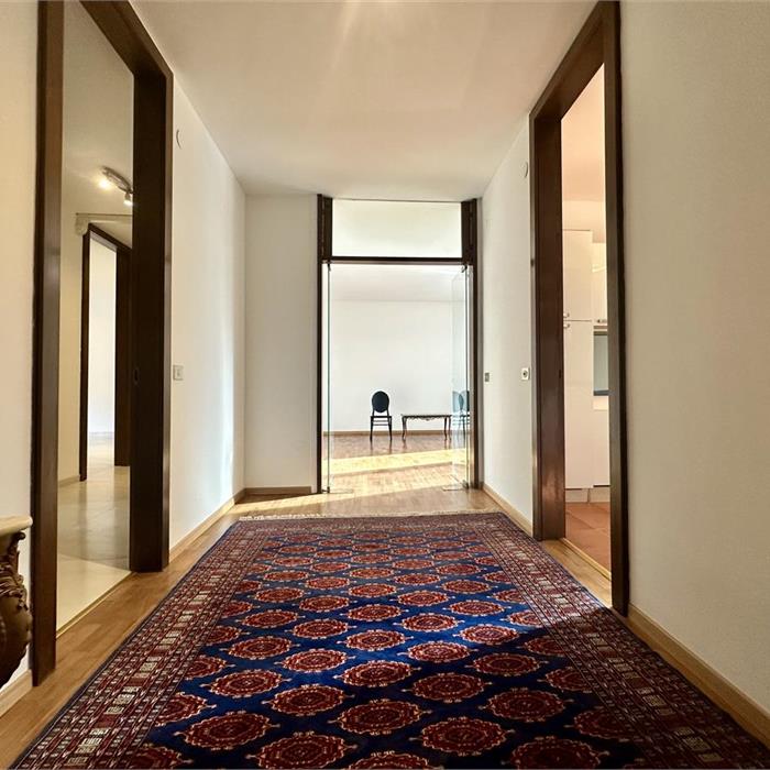 Cassarate – in a pleasant residential area just a short walk from the lake, main services, and the city centre, we offer a spacious 4.5-room apartment located on the second floor of a well-maintained 1980s building. The entrance opens onto a hallway leading to a bright living area, featuring a welcoming, well-proportioned living room and a functional eat-in kitchen, complemented by a convenient guest bathroom. The sleeping area, well separated from the living spaces, includes a large master bedroom and two single bedrooms of comfortable size, perfect for children, guests, or as a home office, with practical storage and hallway spaces. The finishes are neat and well cared for, with regular maintenance and small renovations carried out over the years, keeping the apartment in good general condition and ready to move into. A cellar and a parking space in the garage complete the property, making it a practical and comfortable home in one of Lugano’s most sought-after and liveable neighbourhoods.