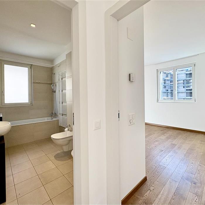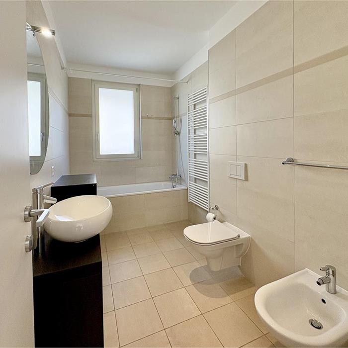 Lugano, modern 2.5-room flat for rent. We are offering an elegant, modern and bright 2.5-room flat with a balcony for rent. The property has been recently renovated with improvements, including the replacement of all kitchen appliances with the latest models. The flat is equipped with air conditioning and underfloor heating for optimal comfort. Located on the second floor of a modern building, the flat is in a central and strategic location, convenient for reaching all major amenities. At the entrance, a small hall/corridor leads to the living area, which includes a living room and an open-plan kitchen. The living room leads to the sleeping area, consisting of a large bathroom with a window and bathtub and a large double bedroom, complete with a modern and elegant built-in wardrobe. The bedroom leads to a small outdoor terrace. There is the possibility of installing a private washing machine in the flat. The property is completed by a communal laundry room without shifts and a spacious cellar with ventilation system. Numerous parking spaces nearby. Rent requested CHF 1400 + CHF 200 for expenses.