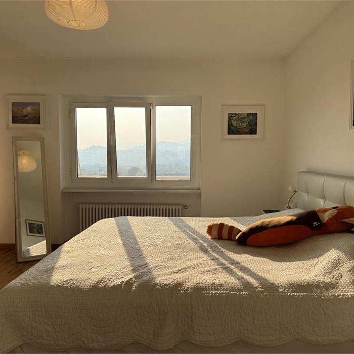In Viganello, in an elevated and panoramic area, we offer for sale a spacious 3.5-room apartment, bright and with beautiful open views. Set in a well-maintained and peaceful residential context, it combines the serenity of a quiet neighbourhood with the convenience of nearby services, transport links, and green spaces, making it ideal for families or anyone seeking a scenic location without giving up the practicality of city living. The apartment is located on the second floor of a 1970s building in good condition, with approximately 100 sqm of living space. The entrance leads to a large, bright living room with access to a balcony offering open views, while the eat-in kitchen is functional and welcoming. The sleeping area includes two bedrooms, a main bathroom, and a guest bathroom, providing comfortable and practical spaces for the whole family. Renovated in the early 2000s, the apartment is in excellent condition, requiring only minor maintenance work. A cellar and a single garage box complete the property, making it a practical and comfortable home for everyday living.