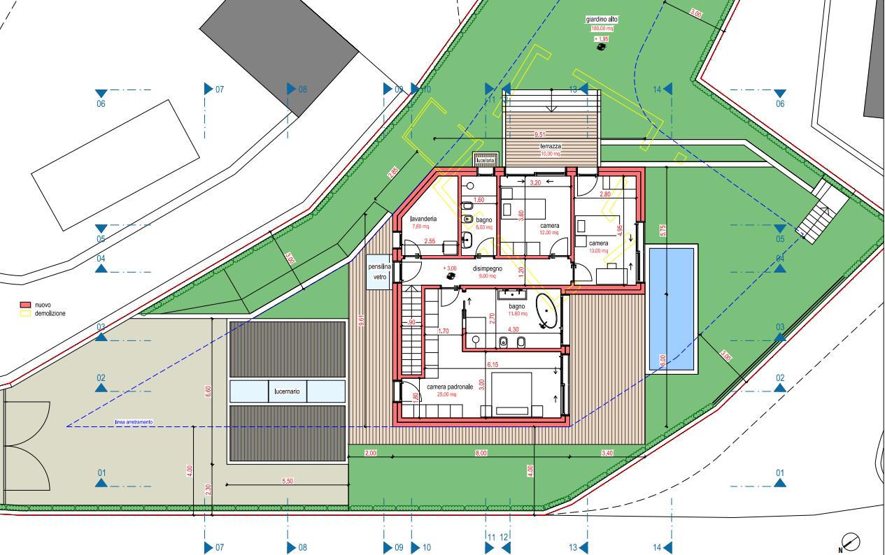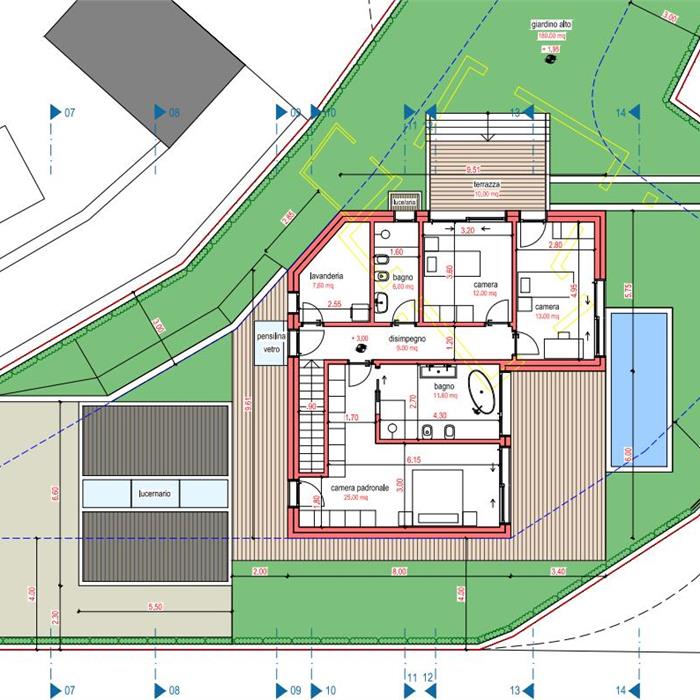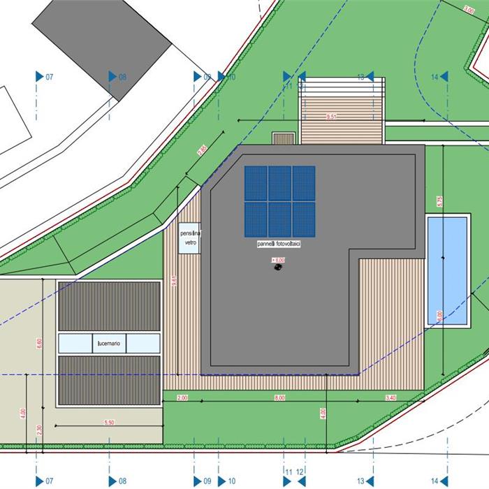 Building plot with approved licence – Lugano Sonvico In one of the most sought-after and peaceful areas of Lugano–Sonvico, we are offering for sale a building plot with an already approved building licence for the construction of a modern detached villa. Location Sonvico offers tranquillity, privacy, excellent exposure and quick connections to Lugano (10–12 minutes). Land data and urban planning indices Land area: 689 m² Zone: Semi-extensive residential (Re) Floor area ratio (FAR) Maximum FAR for the zone (0.5): 344.50 m² Approved project I.S. (0.26): 180.00 m² Occupancy index (I.O.) Maximum I.O. for the area (30%): 206.70 m² Project I.O. (21%): 148.00 m² Minimum green space Requirement: 43% Project: 296.00 m² (43%) Approved project The licence authorises the construction of a modern villa with spacious rooms, plenty of natural light and the possibility of customisation.
