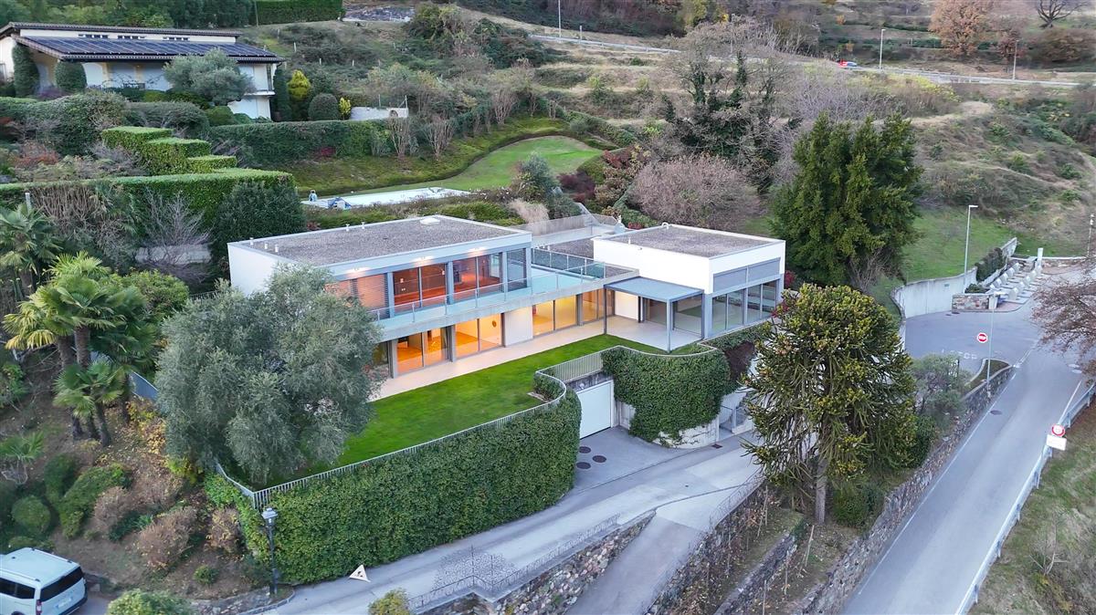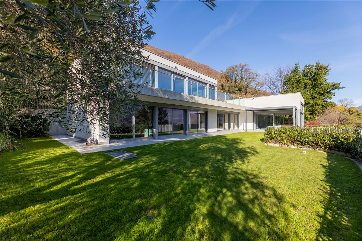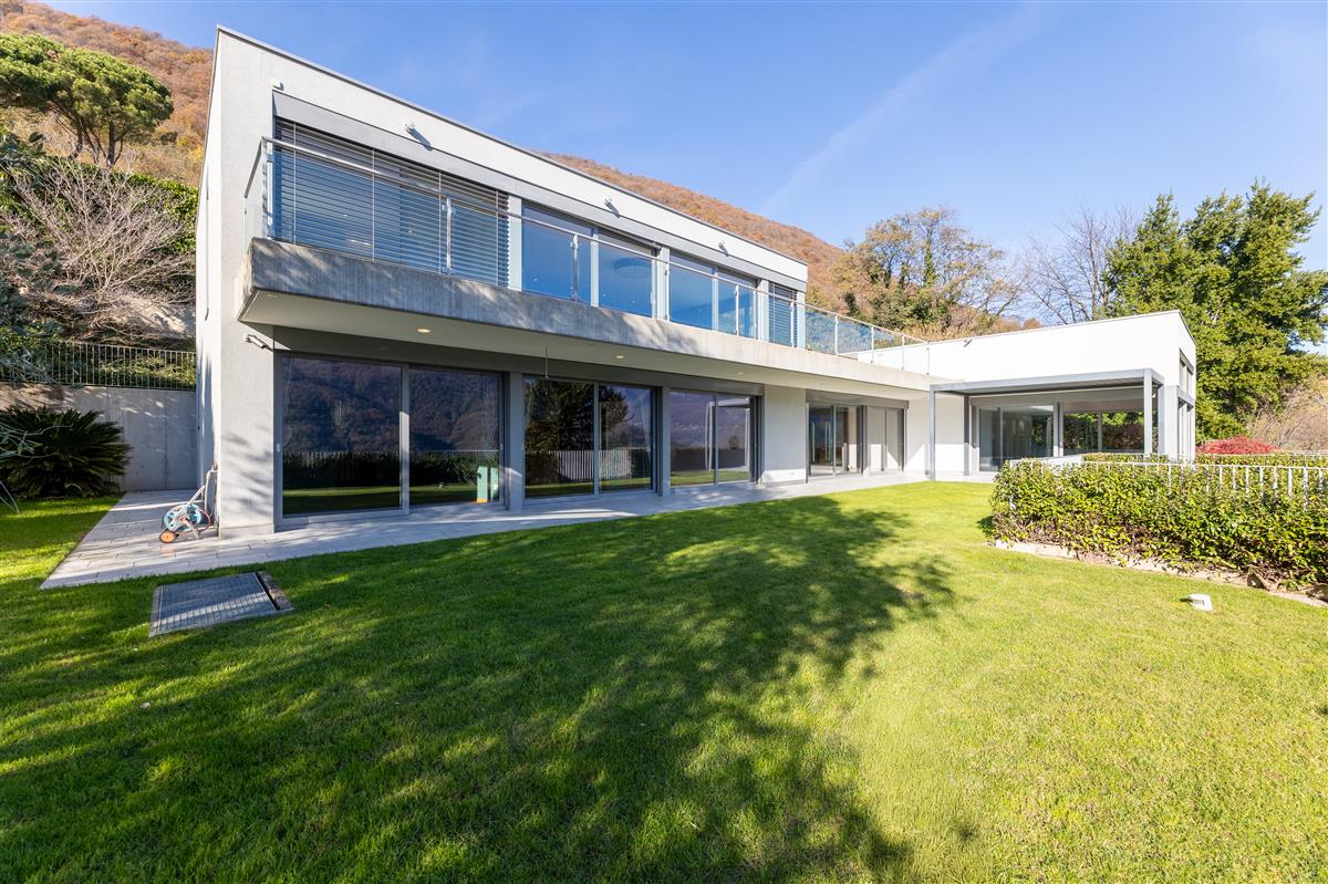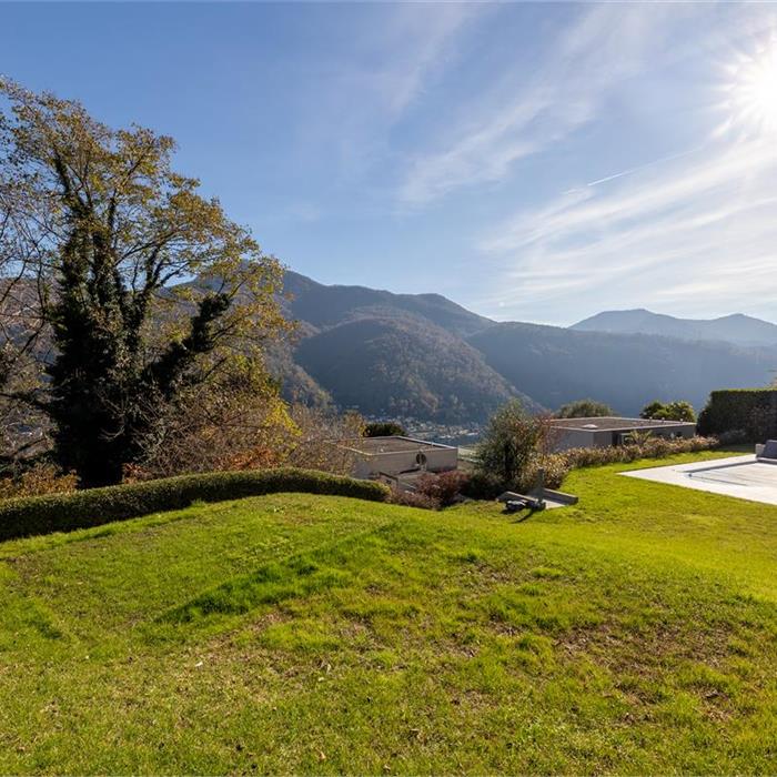 Vico Morcote. In an exclusive location, we are offering for sale an elegant villa of modern architecture with lake view, garden and swimming pool. Built in 2009, it stands on a plot of 1670 sqm. Access to the house is via a footpath or from the garage, where up to 8 cars can be parked. On the same level, there are two large heated hobby rooms, one of which has a bathroom and shower, a large cellar, a convenient laundry room and a kitchen. Upstairs is the living area, with a large entrance hall, an elegant living room with ceilings up to 5 metres high and large windows overlooking the lake and garden. The large, eat-in kitchen and dining room open onto the garden. On the same level is a first sleeping area with two bedrooms served by a bathroom and a walk-in wardrobe, and a third guest bedroom with en-suite bathroom and wardrobe. The master suite of approximately 100 sqm is on the first floor and has a terrace overlooking the lake, a study area, a large walk-in wardrobe and a bathroom with a whirlpool bath. At the top of the garden, with a flat lawn offering privacy and lake views, is the swimming pool. The property is sold with a licence to build another 400sqm villa in the rear garden. Privacy, elegance, large outdoor spaces and attention to detail make this property unique. Asking price: CHF 8'000'000