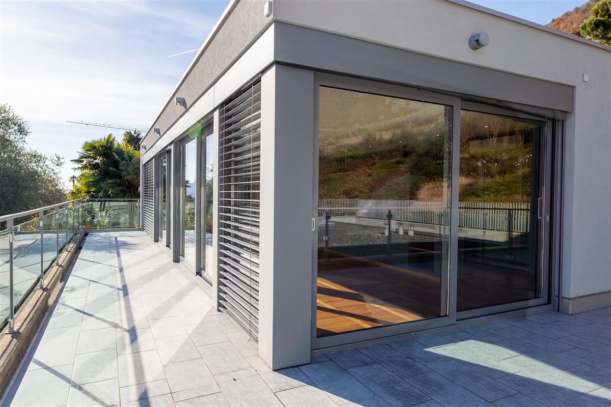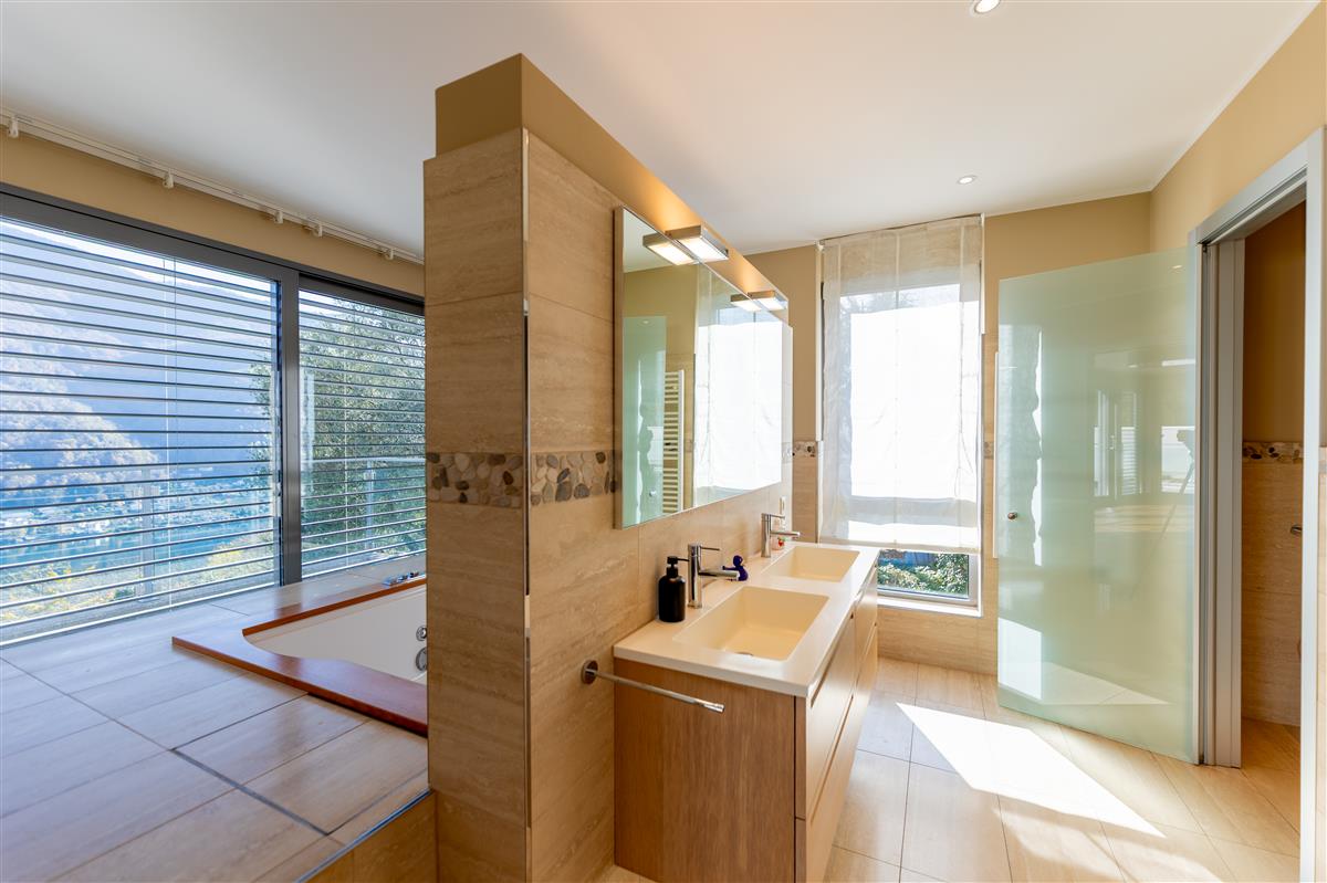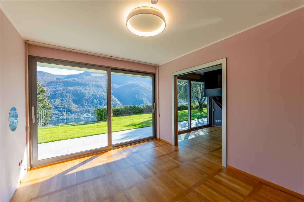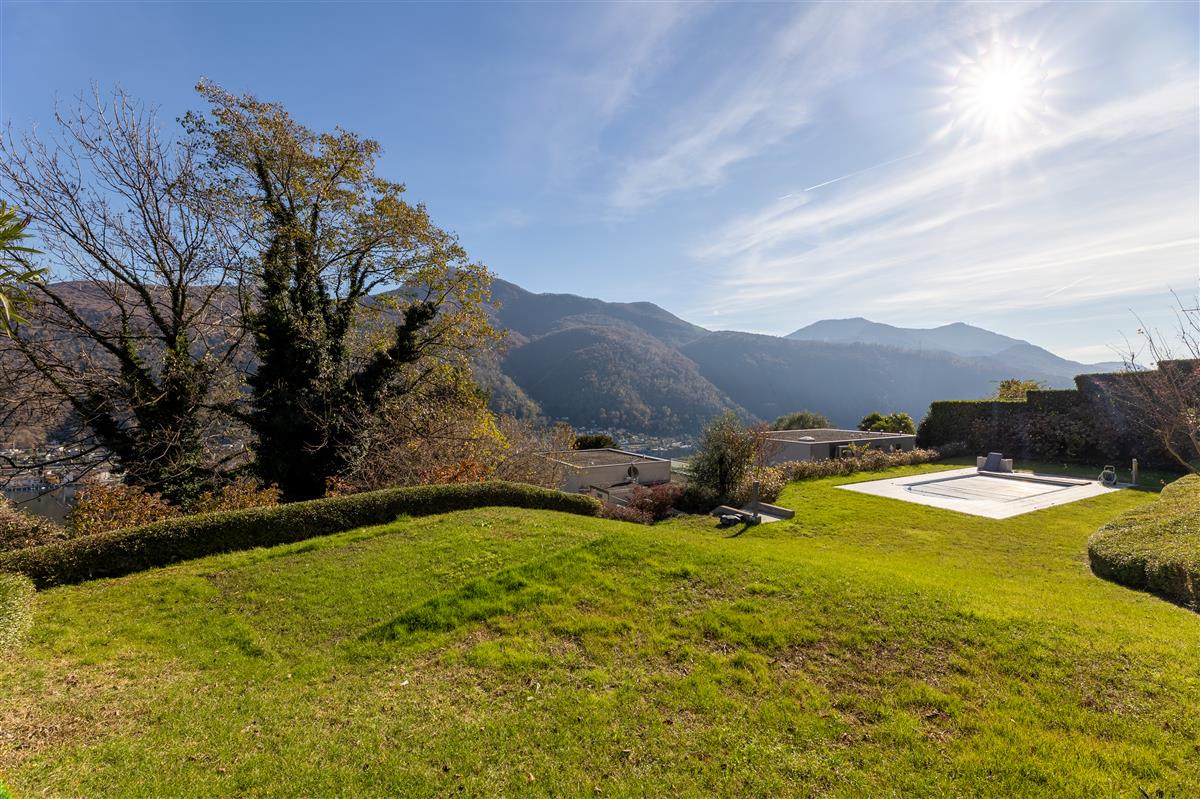 Vico Morcote. In an exclusive location, we are offering for sale an elegant villa of modern architecture with lake view, garden and swimming pool. Built in 2009, it stands on a plot of 1670 sqm. Access to the house is via a footpath or from the garage, where up to 8 cars can be parked. On the same level, there are two large heated hobby rooms, one of which has a bathroom and shower, a large cellar, a convenient laundry room and a kitchen. Upstairs is the living area, with a large entrance hall, an elegant living room with ceilings up to 5 metres high and large windows overlooking the lake and garden. The large, eat-in kitchen and dining room open onto the garden. On the same level is a first sleeping area with two bedrooms served by a bathroom and a walk-in wardrobe, and a third guest bedroom with en-suite bathroom and wardrobe. The master suite of approximately 100 sqm is on the first floor and has a terrace overlooking the lake, a study area, a large walk-in wardrobe and a bathroom with a whirlpool bath. At the top of the garden, with a flat lawn offering privacy and lake views, is the swimming pool. The property is sold with a licence to build another 400sqm villa in the rear garden. Privacy, elegance, large outdoor spaces and attention to detail make this property unique. Asking price: CHF 8'000'000
