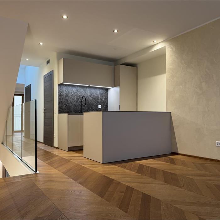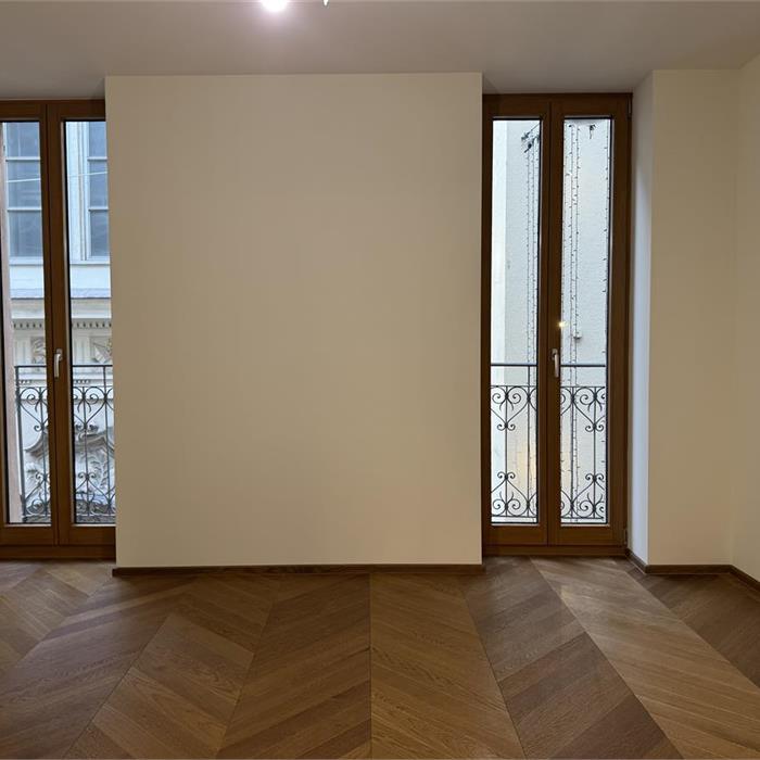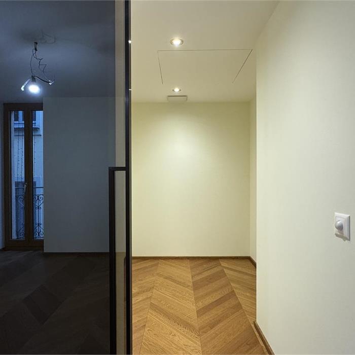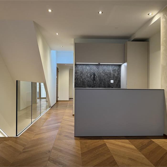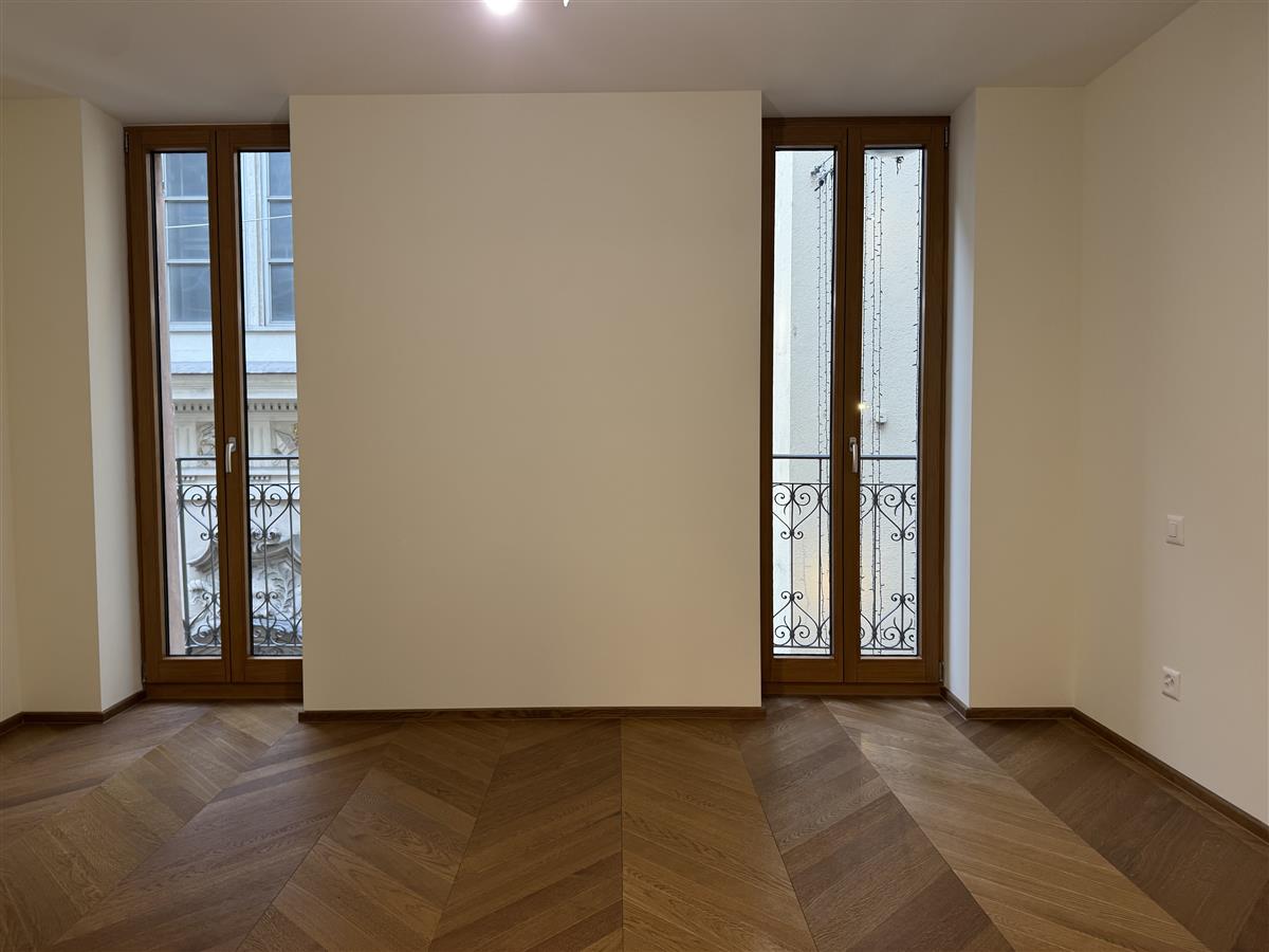 Lugano city centre. In the heart of the pedestrian zone, we are offering a wonderful 4.5-room duplex apartment for first-time rental. The apartment, recently renovated with high-quality finishes, has pedestrian access via stairs and a lift to each floor, and is composed as follows: entrance hall, master bedroom with walk-in wardrobe, bathroom with walk-in shower and double sink, bedroom with private balcony; upstairs, living room with large windows overlooking the city, open-plan fitted kitchen, laundry room, bathroom with shower, bedroom with small balcony. The charming setting of the historic building, the elegant details and the central location make this apartment exclusive. Asking price: CHF 4500 + CHF 250