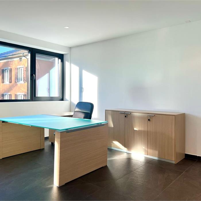In Massagno, in a strategic location just a few minutes from the centre of Lugano, we offer for sale a modern and highly representative office space situated on the ground floor of a recently built residential and commercial property (2016). The location benefits from excellent accessibility, both by public transport and by car, with a bus stop in close proximity, Lugano railway station reachable within minutes, and quick access to the Lugano North motorway junction. The office extends over approximately 159 sqm and is designed as an open-plan space, offering a high degree of flexibility and allowing the layout to be easily adapted to specific operational requirements. The large glazed windows provide abundant natural light and excellent visibility, making the property particularly suitable for professional practices, consulting firms, fiduciary services or businesses seeking a strong and professional corporate image. The office is equipped with a linear kitchenette and a fully fitted bathroom, making it functional and ready for immediate use. The property is further enhanced by a private cellar and, as a significant added value for this type of asset, four indoor parking spaces in the underground garage. This property is ideally suited both as an owner-occupied office and as an investment opportunity, representing an attractive proposition on the local market.