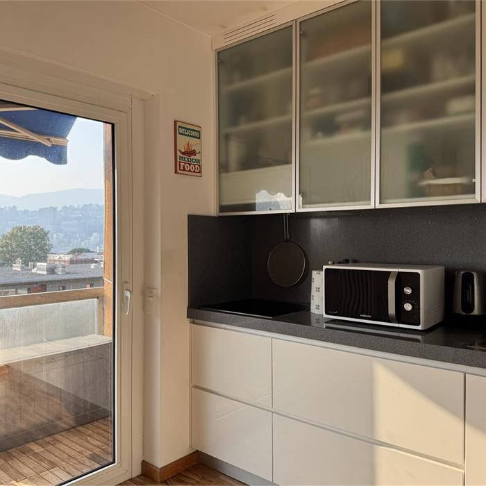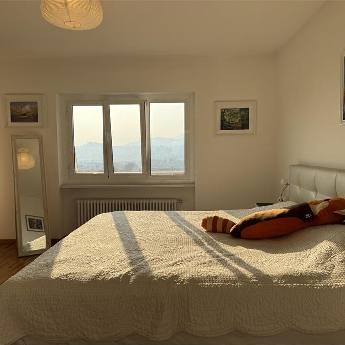 Viganello. In a convenient and well-served area, we offer for rent a spacious 3.5-room apartment with open panoramic views. The apartment is located on the second floor and consists of an entrance hall with a large living room and open-plan dining area opening onto a balcony; a separate, functional and cosy kitchen; a double bedroom with en-suite bathroom with bathtub, a single bedroom, and a bathroom with shower. The property also includes a private laundry room in the flat, a cellar and a garage. Asking price: CHF 2'800 + CHF 200 flat-rate expenses