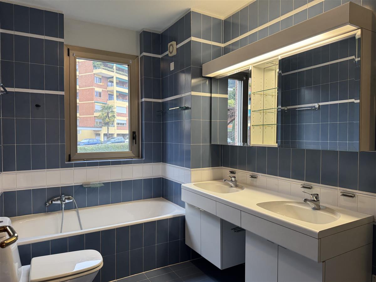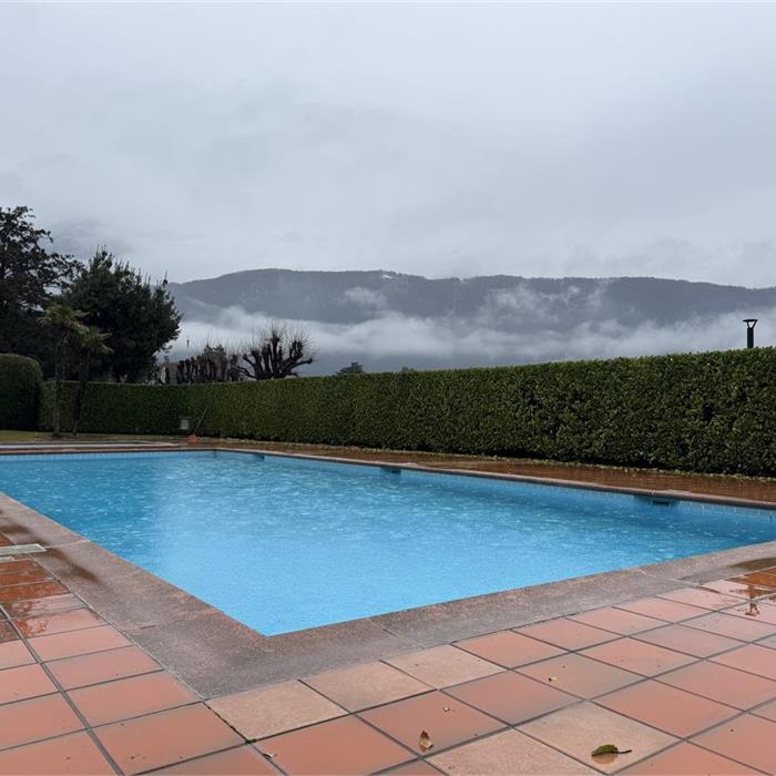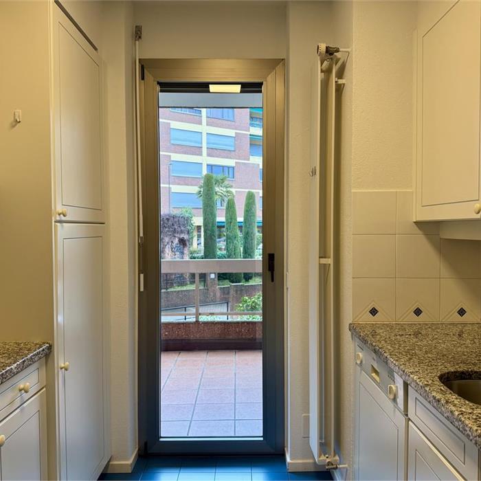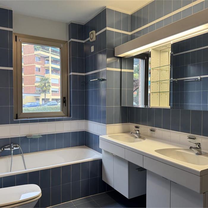 Melide. In a green setting just a stone's throw from the motorway, we are offering a spacious 2.5-room flat with a large balcony for rent. The flat comprises an entrance hall with built-in wardrobes, a separate kitchen, a living room opening onto a large covered balcony, a bedroom with access to a second balcony, and a bathroom with a window and bathtub. The property also includes a cellar and a parking space in the garage. The flat is located in a building with two swimming pools and a large communal garden, equipped with a sauna, with direct access to the lakeside promenade. Asking price: CHF 1550 + CHF 250 service charges + CHF 150