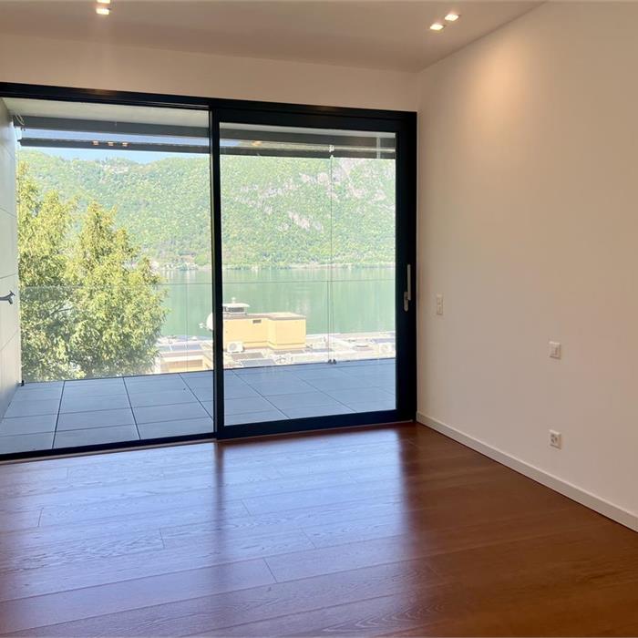 Exclusive oasis of modernity with breathtaking lake view in Bissone: charming 2.5 rooms in newly built residence. In one of the most charming frames of Ceresio, we offer for sale an elegant 2.5-room apartment located in a high standing residence built in 2021. A rare opportunity for those seeking contemporary comfort, natural light and a simply enchanting lake view. This real estate gem stands out for its warm and modern atmosphere. Spacious open-plan living room with designer kitchen, large windows flooding the spaces with natural light and offering panoramic views, fine parquet floors in all rooms and integrated air conditioning system for maximum comfort in every season. The location is strategic: quiet but convenient, just minutes from Lugano, with quick access to the highway connecting with the Italian-Swiss border. Perfect as primary residence, exclusive pied-à-terre or income investment: the high rental demand in the area guarantees excellent prospects for returns and revaluation over time. To complete a garage space at CHF 50,000 and private cellar.