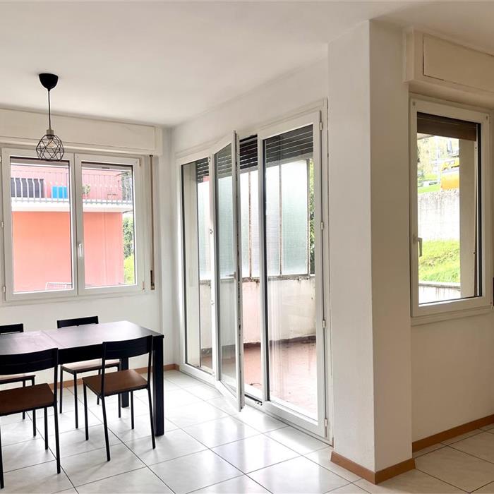 Breganzona, 2.5 rooms with terrace for rent. In a very quiet residential area, next to the sports center and the Breganzona fitness trail, we offer a two-room apartment for rent. The apartment, which is very bright, is located on the second floor of a small building, in a private cul-de-sac next to the woods. The apartment consists of: - Large living room with open kitchen and terrace - Double bedroom - Bathroom with bathtub The property also includes a cellar and a communal laundry room (no shifts!). Possibility to rent a garage for CHF 140 per month. REQUEST: CHF 1050 RENT + CHF 150 DEPOSIT FOR CONDOMINIUM FEES.
