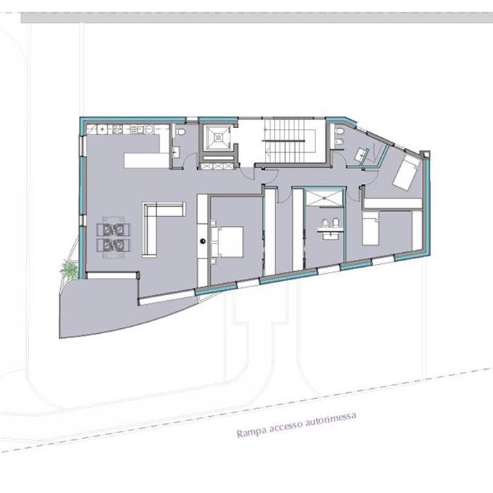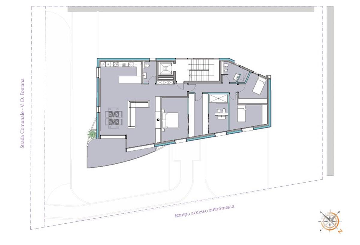 The new Joli Lac residence is located in a privileged position just a stone's throw from Lake Lugano, in a quiet and sunny area, served by public transport, close to various amenities and the Lugano Sud motorway exit. Access is via Via D. Fontana, a one-way neighbourhood street that runs from the lakeside Via Riva Caccia. The Joli Lac residence has seven floors above ground, built along an east-west axis. The two basement floors house the car park, some cellars and the communal laundry room. The flat on the first floor is composed as follows: Entrance hall. Living room, dining room and kitchen. Hallway leading to the private garden. Corridor. Walk-in wardrobe. Bedroom. Master bathroom. Terrace. Private garden. The property includes a parking space in the garage.