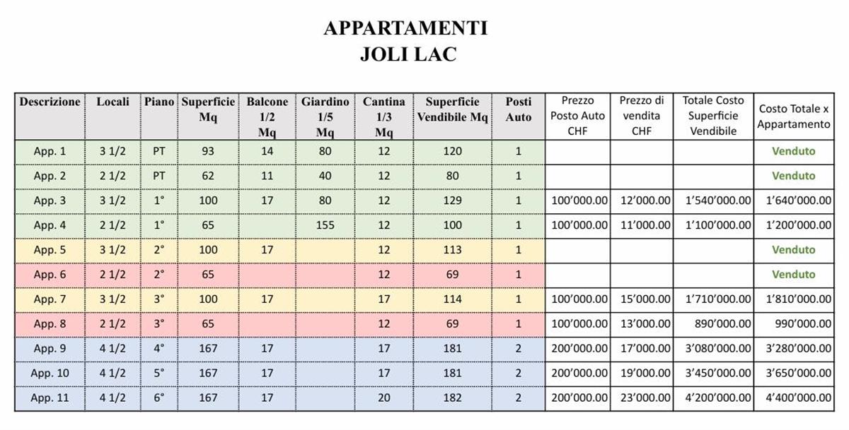The new Joli Lac residence is located in a privileged position just a stone's throw from Lake Lugano, in a quiet and sunny area, served by public transport, close to various amenities and the Lugano Sud motorway exit. Access is via Via D. Fontana, a one-way neighbourhood street that runs from the lakeside Via Riva Caccia. The Joli Lac residence has seven floors above ground, built along an east-west axis. The two basement floors house the car park, some cellars and the communal laundry room. On the third floor, the flat is composed as follows: Entrance hall. Living room, dining room and kitchen. Hallway leading to the private garden. Corridor. Walk-in wardrobe. Bedroom. Master bathroom. Terrace. The property includes a parking space in the garage.