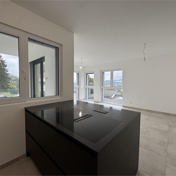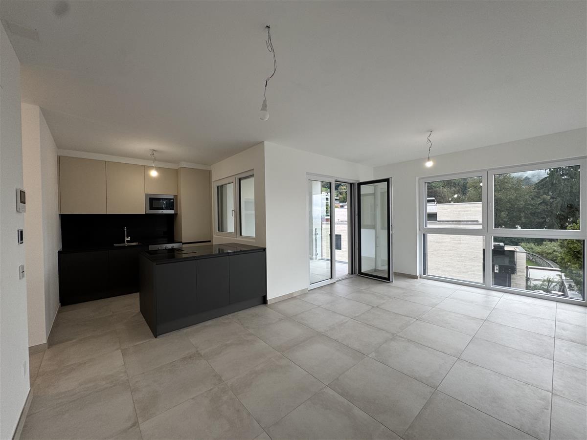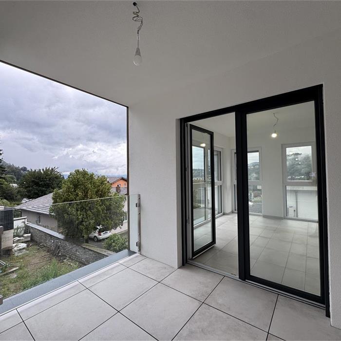 Cadro. In a newly built residence consisting of only 4 units, we offer a comfortable 3.5-room flat for first-time rental. The flat consists of an entrance hall, open-plan kitchen, living area opening onto a covered balcony, master bedroom with en-suite bathroom, bedroom, and bathroom with shower. The property also includes a private laundry room in a shared area, a cellar and two parking spaces in the garage. It is possible to install a washer-dryer in the apartment. This is the perfect solution for those looking for a modern and functional apartment just a few minutes from Lugano. Asking price: CHF 2'000 + CHF 200 charges + parking spaces
