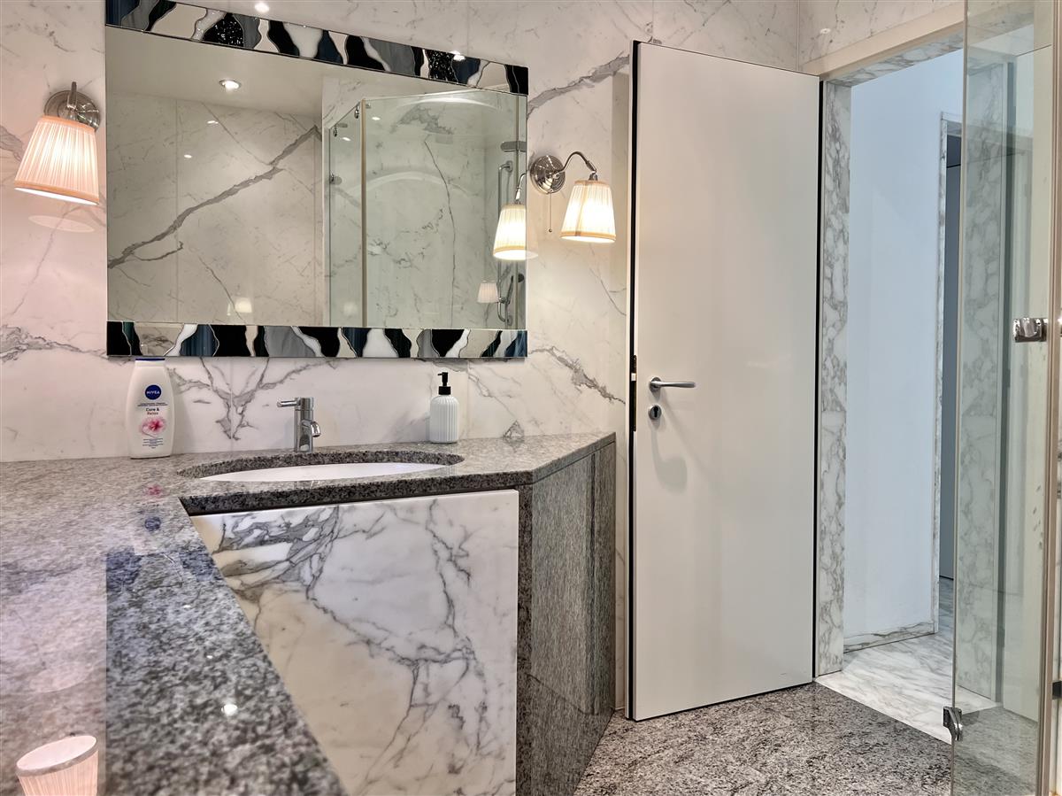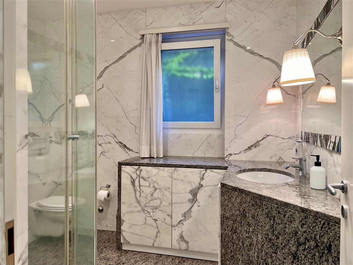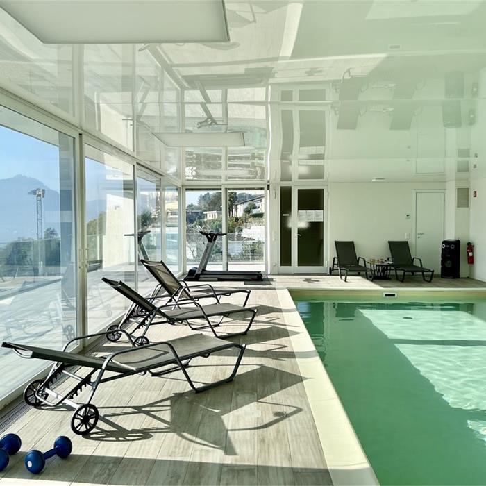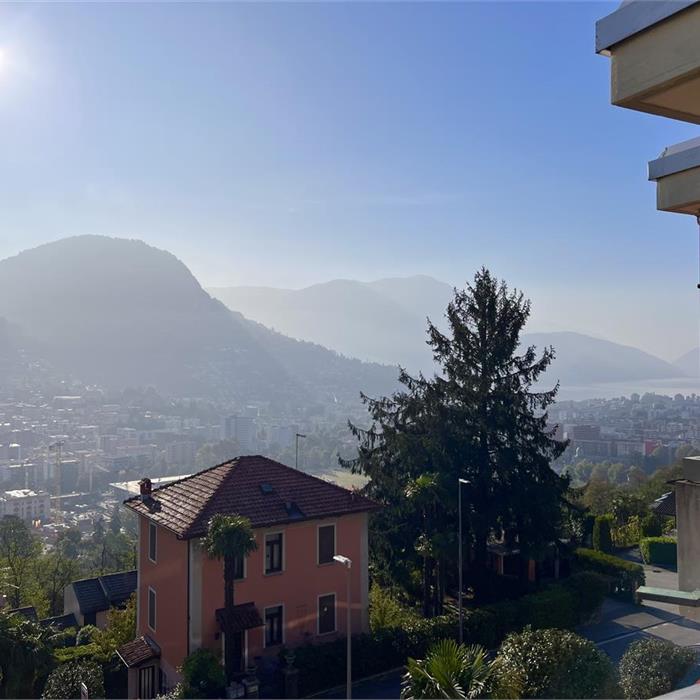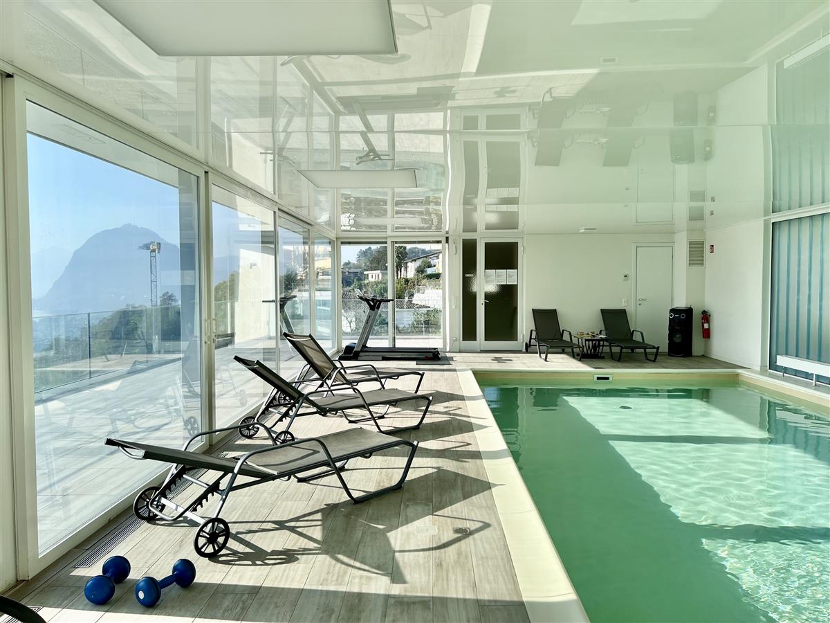 Porza. Spacious and Bright Furnished 2.5-Room Apartment We are renting a spacious and bright 2.5-room apartment, fully furnished, located on the 3rd and top floor of a well-maintained building. The bright living room, with marble flooring, opens onto a generous balcony. The fully equipped kitchen also has access to a smaller balcony. The master bedroom features a large custom-built wardrobe. The bathroom is fitted with a multifunctional shower that converts into a steam bath. In addition, the apartment includes a private washer-dryer. The property is equipped with air conditioning in all rooms and underfloor heating. All windows are fitted with mosquito screens. The building offers a stunning wellness area on the rooftop, including a covered swimming pool, spa area with steam bath, a spacious sun terrace with loungers, and breathtaking views of the lake and the city. A private cellar and a parking space in the underground garage complete the property. RENTAL TERMS: Rent: CHF 1,800 Advance for utilities: CHF 400 Parking space: CHF 150