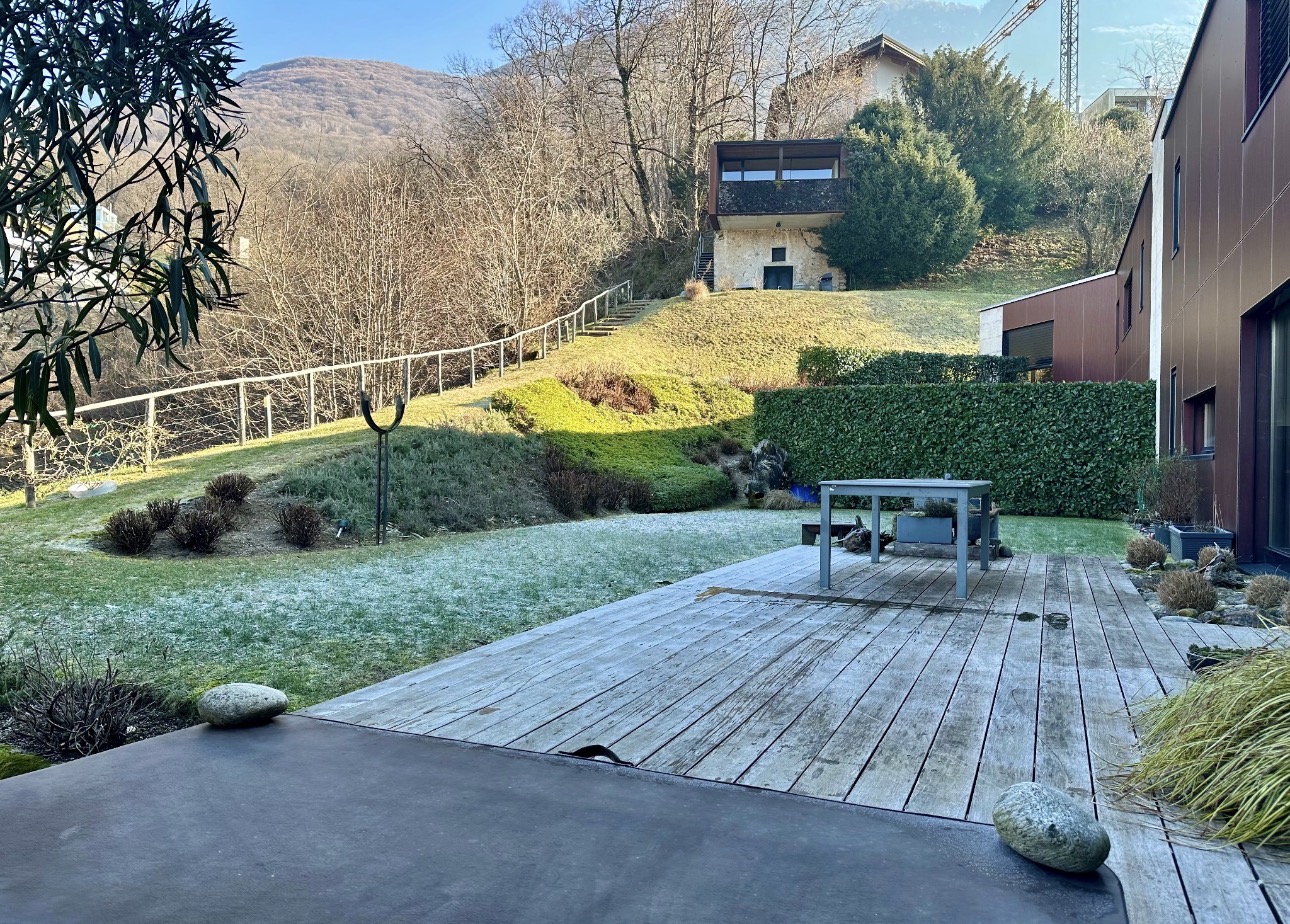 In Davesco, one of the greenest, sunniest, and most residential areas near Lugano, we offer for sale this beautiful 4.5-room apartment with a private garden and Jacuzzi. It is the perfect choice for those seeking a peaceful environment surrounded by nature, without giving up the convenience of being just minutes from the city centre and main services. The property is located in an elegant, well-maintained building with only a few units, in a strategic and quiet position. The interiors are spacious, bright, and well designed, featuring high-quality finishes and a welcoming atmosphere. The layout includes a large living room with dining area and access to a generous terrace, a separate eat-in kitchen, and a perfectly maintained private garden equipped with a Jacuzzi—ideal for relaxing moments or entertaining guests. The sleeping area features a master bedroom with en-suite bathroom (shower), two additional bedrooms, and a second bathroom with bathtub. A private laundry room and a guest WC at the entrance complete the apartment. Additional amenities include two convenient parking spaces in the garage (CHF 45,000 each), a spacious cellar, a shared grottino perfect for convivial evenings, and a sauna area reserved for residents. An elegant and comfortable home, offering privacy, convenience, and quality of life just a few minutes from the centre of Lugano.