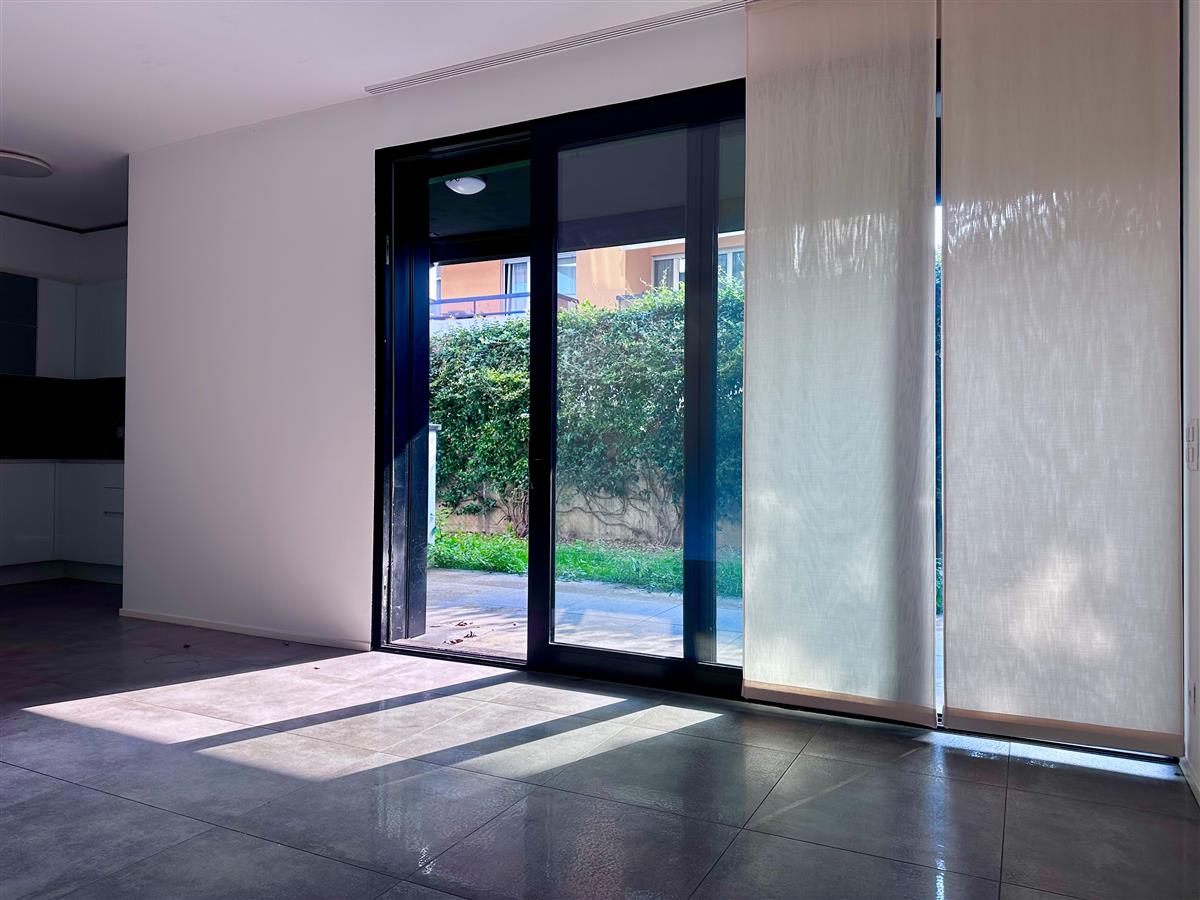 In a quiet and well-connected residential area, we offer for sale an elegant 2.5-room apartment with a private garden in Pregassona, located within a modern and refined residence just a few minutes from the center of Lugano. The apartment is on the ground floor, very bright, and features a large south/west-facing garden, a covered terrace, large windows, high-quality finishes (oak parquet flooring, porcelain stoneware bathroom tiles), electric blinds, and underfloor heating. It is fully furnished, with a fully equipped kitchen, a master bedroom, and a bathroom with a shower (pre-fitted for a washer/dryer). A private cellar is also included. The area is peaceful, residential, and well served by public transport.