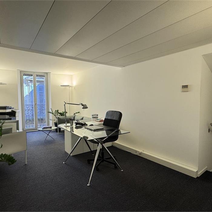 Lugano city centre. In a prestigious building in the city centre, we are looking for a new tenant with references for a portion of commercial space for office use (1 room). Passing through the reception area, you will find the bright room available for rent on the left. The shared areas include a kitchen and bathrooms. A spacious meeting room is available upon reservation. Asking price: CHF 2,000/month including expenses and utilities.
