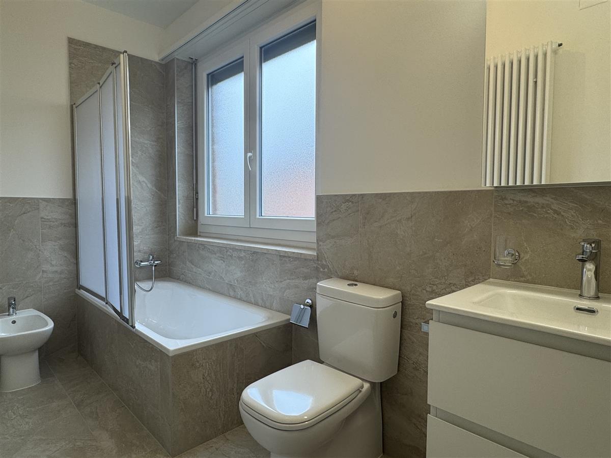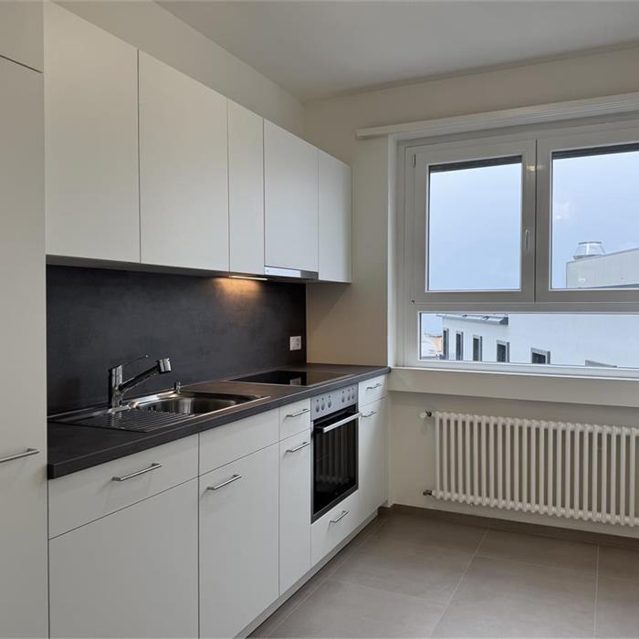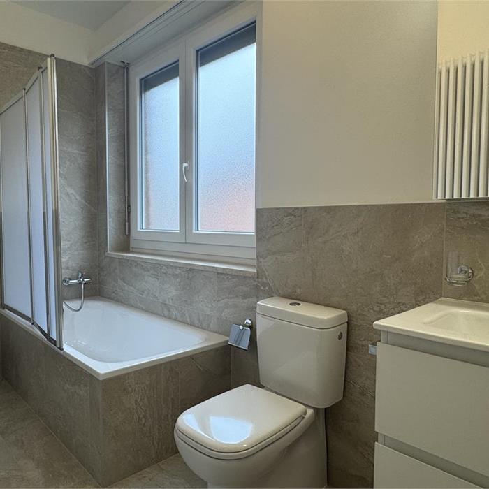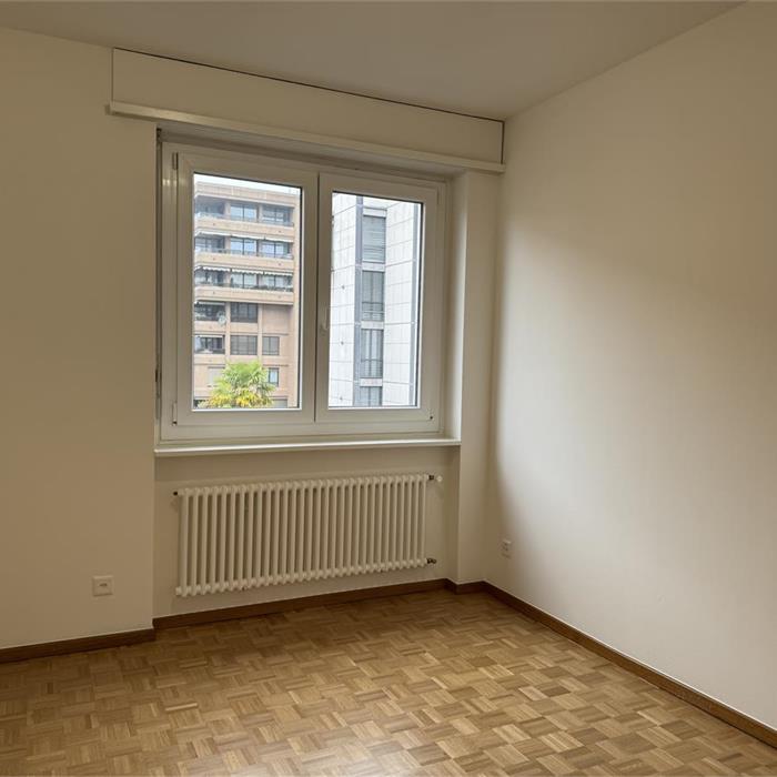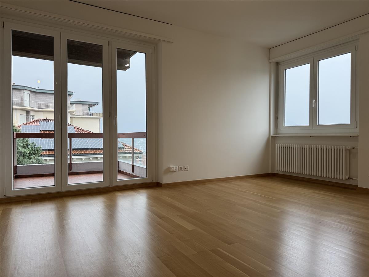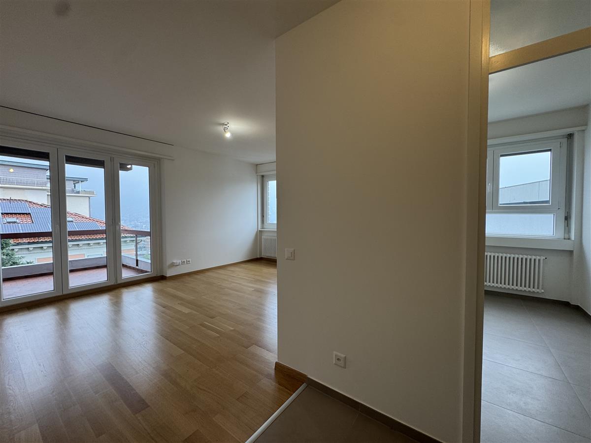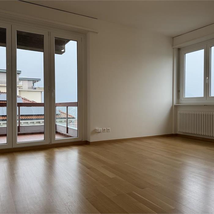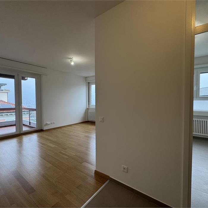 Lugano. In a convenient and well-served location, newly renovated 3.5-room apartment for rent. The flat, located on the top of five floors and with a wonderful view of the lake, consists of an entrance hall, separate kitchen, living area opening onto a covered terrace, two bedrooms, bathroom with bathtub and bidet, and guest toilet. The property includes a cellar and communal laundry room. Asking price: CHF 1,500 + CHF 250 deposit for expenses