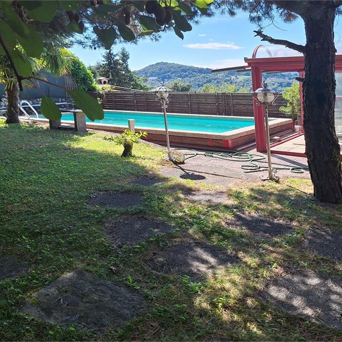 A Corner of Paradise in the Hills of Lugano Nestled among the green hills of Carabbia, this exclusive home offers a haven of serenity and unparalleled beauty. With breathtaking views of the Alps and tranquillity that embraces every corner, it is the perfect place where nature and comfort come together to create a unique home, designed for those seeking a balance between modernity and tradition. Property description Located in a private village just 3.5 km from the centre of Lugano, the property covers an area of 271 m² spread over four levels and 950 m² of land. The villa, designed to ensure harmonious cohabitation between generations, also includes a studio apartment with a separate entrance, ideal for guests or parents. The bright and welcoming interior spaces are enhanced by Florentine terracotta floors and exposed beams that make each room unique. The large living room and six bedrooms, two of which have en-suite bathrooms, offer ample space for the whole family. The fitted kitchen is ready to welcome convivial moments, while the laundry room and utility rooms (equipped with a heat pump and photovoltaic system) meet every practical need. A large terrace surrounded by ornamental plants, a veranda that can be closed with a folding roof, and a swimming pool with a counter-current system complete the offer of this exclusive residence, enriched by a well-kept garden that is easy to maintain thanks to the natural stone walls that shape the terrain. The property also has a double garage, a single garage and an outdoor parking area for four vehicles, all accessible via a remote-controlled chain. There is no shortage of space for relaxation, such as the sauna and the garden tool shed, along with a barbecue area with a fireplace. The house is equipped with radiator heating powered by a heat pump, 76 m² solar panels and triple-glazed windows that guarantee excellent energy efficiency. A unique opportunity for those seeking the highest quality of life, just a stone's throw from the city and surrounded by unspoilt nature.