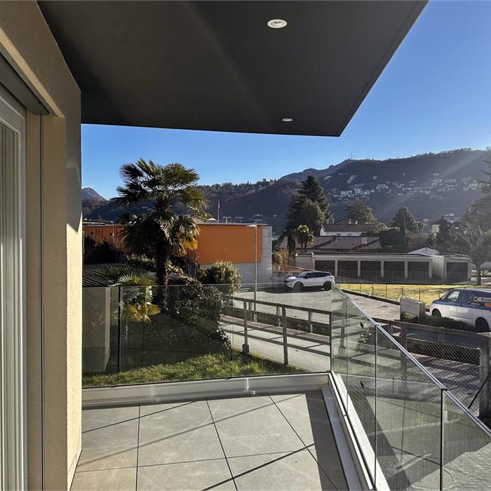 A haven of light overlooking the mountains and the lake. Here the sun pours generously through wide windows, caressing the floors and drawing elegant shadows. Modern lines, luminous silence, and a terrace where the panorama becomes everyday life. A home that breathes calm, contemporaneity, and beauty. Modern apartment in a recent residence in Magliaso, located on the 1st floor of Block A. Comprising a bright living room with open-plan kitchen and access to the terrace, two bedrooms, and two bathrooms with shower. Contemporary finishes, large glass surfaces, and well-distributed spaces. The property is completed by an outdoor parking space at CHF 30,000 and a cellar with private laundry. Secondary residence.