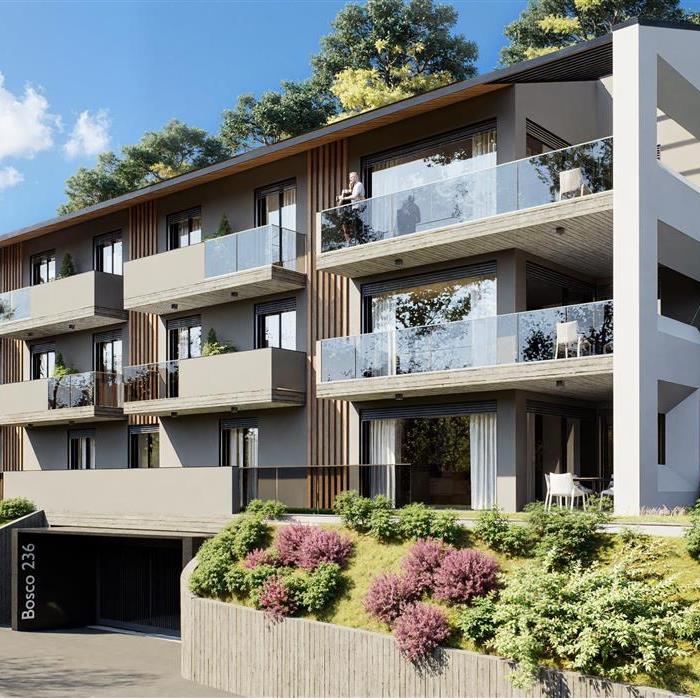 Immersed in the tranquillity of Bosco Luganese, there is an elegant and modern residence, designed for those who wish to live in the tranquillity of the countryside without renouncing the convenience of the city. This new construction offers rooms with attention to the smallest details, in an exclusive and reserved residential context. The property consists of six residential units, including 3.5 and 4.5-room flats and two duplex penthouses of particular value. Each unit is designed to offer generous spaces, bright rooms and a cosy atmosphere, with large windows overlooking the surrounding hilly landscape, providing a feeling of openness and well-being at all times of day. The location is ideal for lovers of nature and outdoor sports: there are hiking and cycling routes in the surroundings, as well as centres for activities such as tennis, horse riding and water sports. At the same time, the area is well served: shops, restaurants, schools and public transport can be found in the immediate vicinity, making everyday life simple and pleasant. In addition to representing a quality housing choice, this residence also constitutes an interesting investment opportunity, thanks to an advantageous tax multiplier and an excellent potential for property appreciation over time.