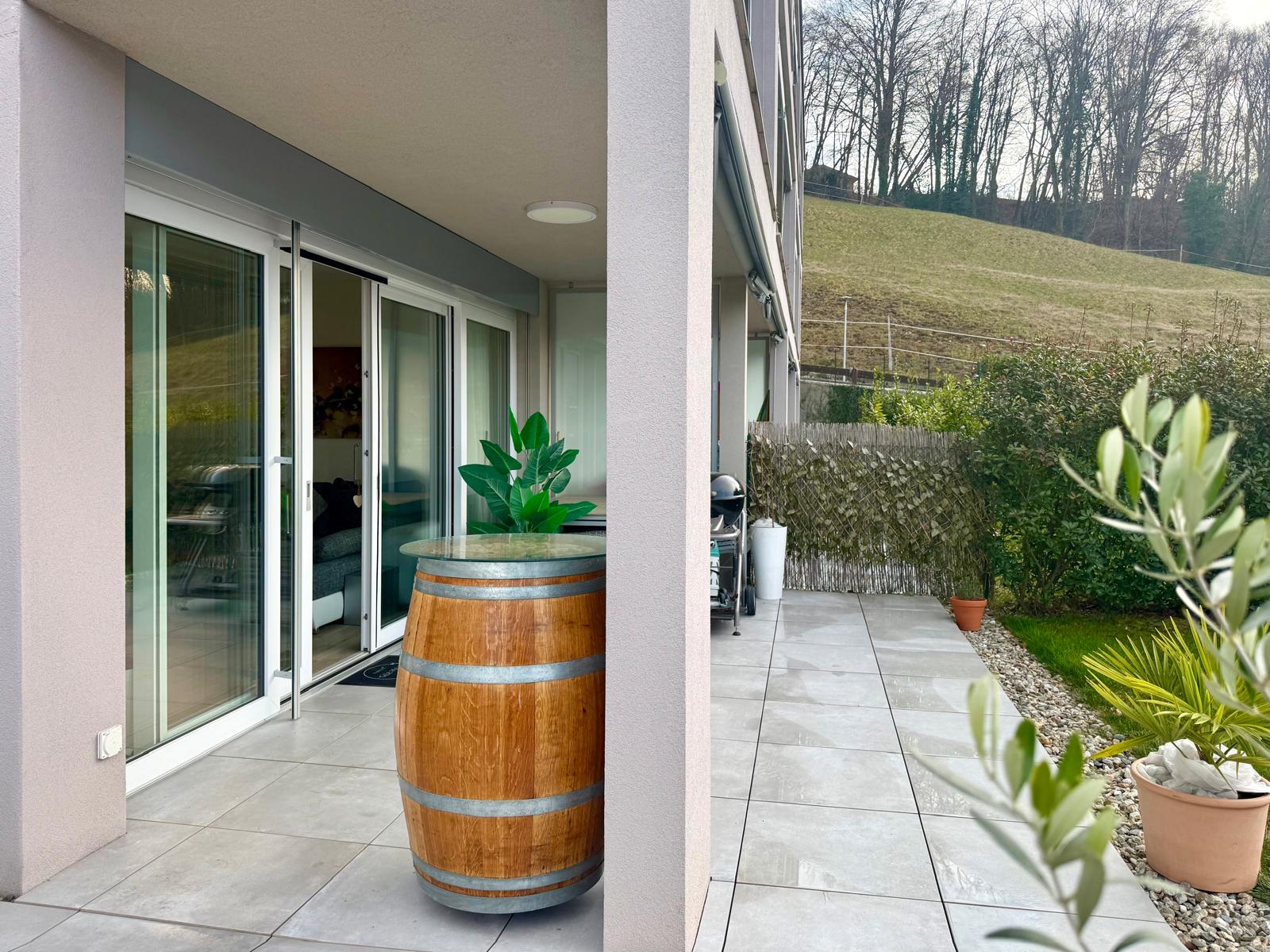 In una posizione tranquilla e verdeggiante, a pochi minuti dal centro di Lugano, proponiamo in vendita un moderno appartamento di 3.5 locali situato al piano terra di una residenza recente, costruita nel 2020. L’abitazione colpisce subito per la grande luminosità degli ambienti e per la distribuzione razionale degli spazi. La zona giorno è accogliente e ben illuminata, con accesso diretto all’area esterna composta da un piacevole giardino privato e da una terrazza coperta, perfetta da vivere in ogni stagione, ideale per momenti di relax o convivialità all’aria aperta. La zona notte offre due camere ben proporzionate e due bagni ampi e moderni: uno dotato di box doccia e l’altro con vasca, entrambi rifiniti con materiali attuali e di qualità. All’interno dell’appartamento è presente la colonna lavasciuga, un dettaglio pratico che aumenta il comfort quotidiano. L’immobile si trova in un contesto residenziale curato, immerso nel verde e con spazi all’aperto ideali per famiglie con bambini o per chi ama vivere a contatto con la natura, senza rinunciare alla vicinanza ai principali servizi e alla città. Completano la proprietà una cantina da circa 7mq e la possibilità di un posto in autorimessa a CHF 50'000.- Un appartamento recente, luminoso e pronto da vivere, perfetto per coppie, famiglie o per chi cerca qualità e tranquillità nel cuore del Ticino.