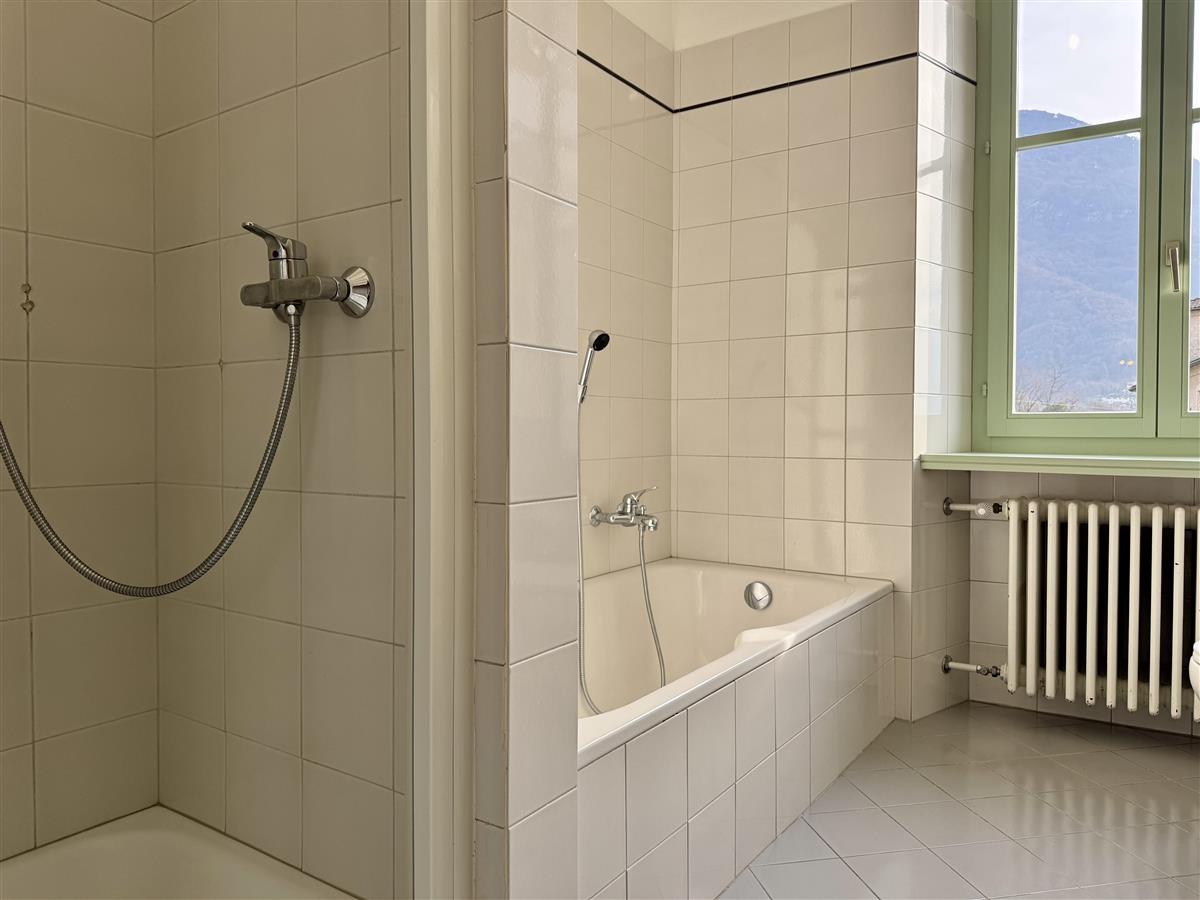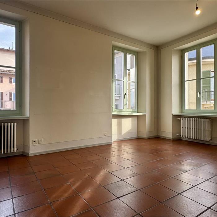 Canobbio. In zona tranquilla e panoramica nella meravigliosa cornice di Villa Fumagalli, proponiamo in locazione elegante appartamento di 6.5 locali con meravigliosa vista sul lago di Lugano. L'appartamento si trova al primo piano di uno stabile storico provvisto di ascensore e di soli tre piani con un grande parco condominiale e piscina, ed è così composto: ingresso con cucina separata, camera padronale con bagno en suite; camera da letto matrimoniale; bagno con vasca e doccia; soggiorno, sala da pranzo e biblioteca arricchita da un meraviglioso camino; una terza camera da letto provvista di bagno con doccia; locale con predisposizione per colonna lavasciuga. Completano la proprietà cantina e due posti auto in autorimessa. Le ampie metrature, l'aver preservato il contesto storico e la posizione rendono questo immobile imperdibile per una famiglia che vuole godere di un contesto tranquillo a 10 minuti dalla città. Richiesta: CHF 2900 + CHF 500 spese a forfait + CHF 150 cad. posti auto